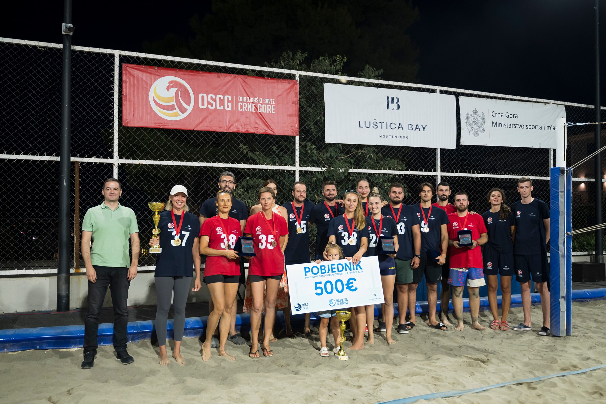 The trophies and gold medals for the winners in both categories were awarded by Ivan Bošković, Secretary General of the Volleyball Federation of Montenegro, while the prizes for the second and third-placed teams were presented by Valentina Krivokapić from the Luštica Bay company.