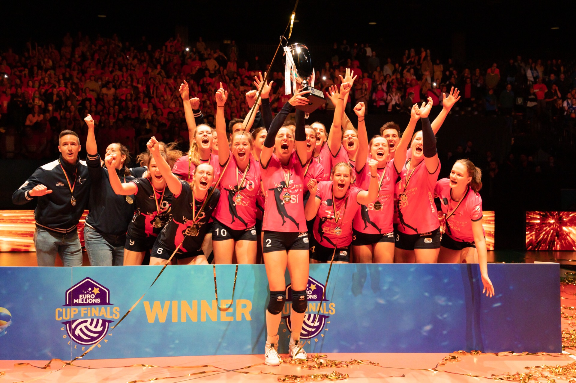 After two years without any spectators, the EuroMillions Cup Finals in Antwerp turned out to be a huge success, as they spoiled many Belgian Volleyball fans with two thrilling games contested on a high level, with outsiders Caruur Volley GENT and VC OUDEGEM emerging as surprise winners.