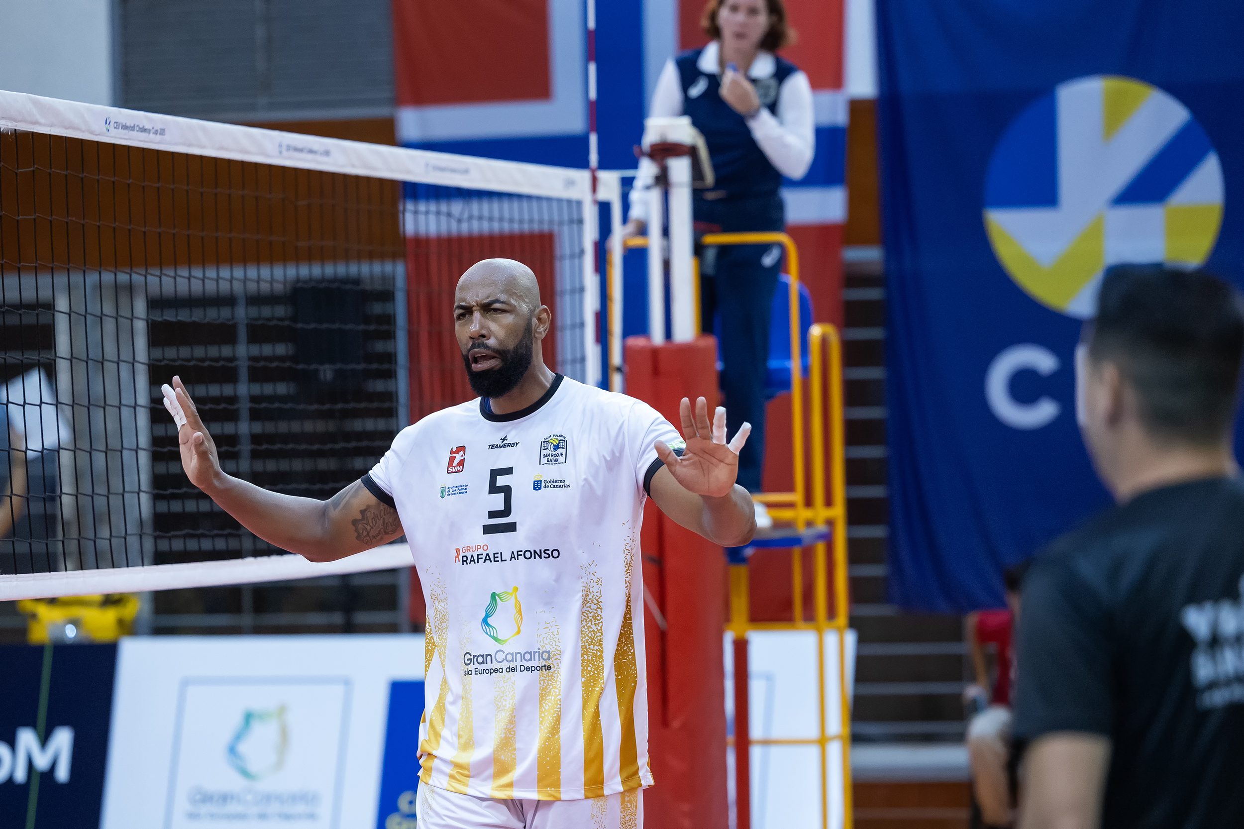 At this stage, CV San Roque head coach Alberto Rodríguez decided to involve six youngsters in the game right from the start of the third set. Nicolas Omar Rodriguez, Alvaro Arocha, Alejandro Mollo, Alessandro Biliato, Antonio León and Pedro Erdocia all did well, thereby gaining valuable international experience. The fans enjoyed the match all the way until the end with another 25-19 win putting the cherry on top of the cake for the team from Las Palmas.