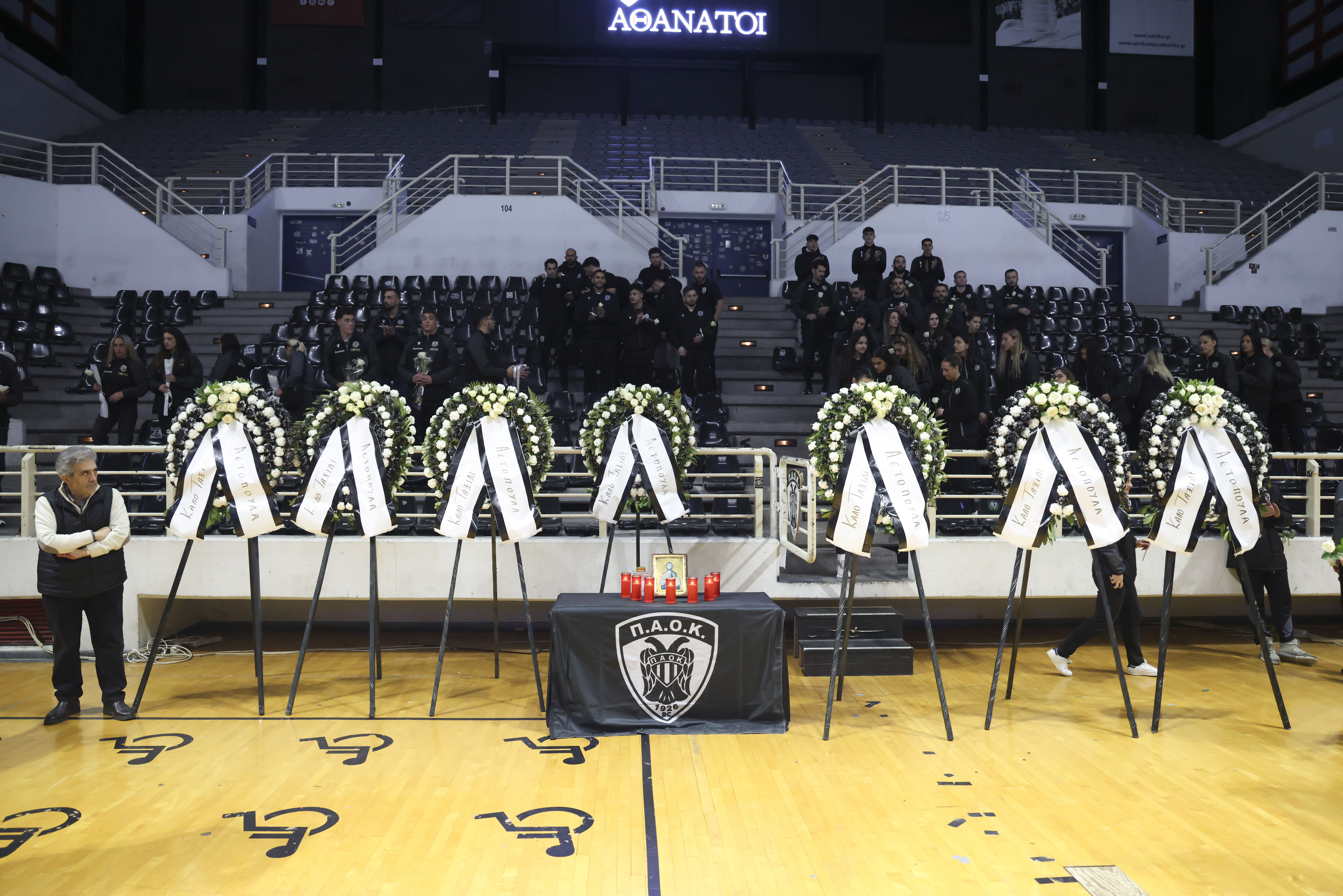 Before the start of the match, the President of A.S. PAOK, Alkis Isaiadis, and the men’s Volleyball team laid wreaths at the memorial area of the PAOK Sports Arena to pay tribute to PAOK young fans who had perished in a tragic car accident in Romania while travelling to Lyon for a football match. Moreover, before the first serve of the match, a minute’s silence was observed in memory of the seven untimely lost PAOK supporters.