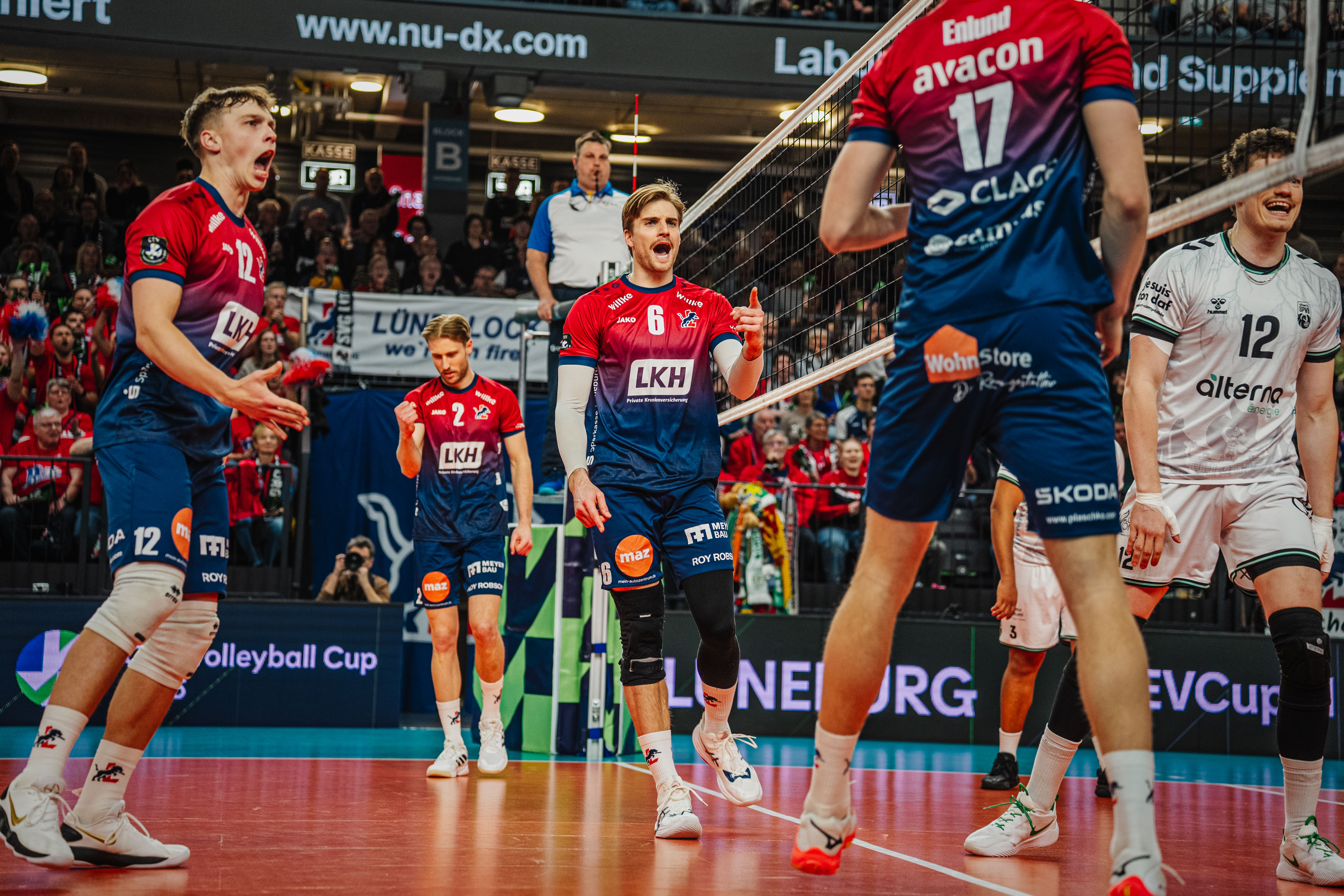 That was an exclamation mark: just four days after their DVV Cup triumph against VfB FRIEDRICHSHAFEN, SVG LÜNEBURG was once again fully focused on success. The LüneHünen won the first leg of the CEV Cup quarter-final against Alterna SPVB POITIERS 3-1 (25-23, 25-22, 22-25, 25-14), thereby providing another highlight on the European stage.