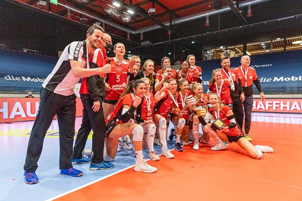 At the very same venue, VC Kanti SCHAFFHAUSEN secured the women’s title for the first time in 12 years. They showed great composure in a close fifth set of another dramatic match, eventually avenging their loss to Viteos NEUCHATEL Université in the semis of the national league. Actually, Kanti SCHAFFHAUSEN won the first set 25-23 but their opponents fought back valiantly to take the next two and turn things around. SCHAFFHAUSEN regrouped to seal a comprehensive 25-13 win in the fourth set before they secured a close 15-13 win in the deciding tiebreak. Korina Perkovac was their best player in the match, an honour that went to Olivia Wassner for NEUCHATEL.
