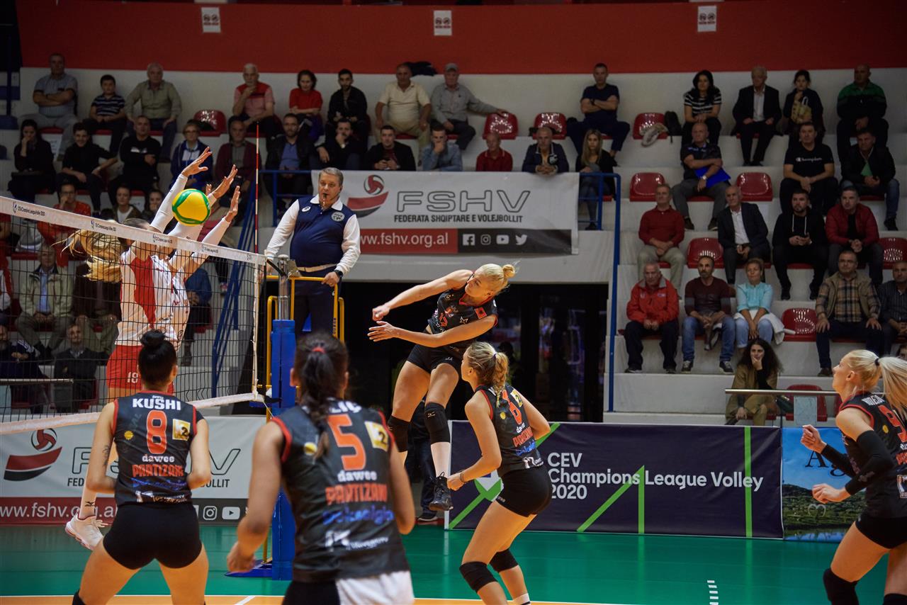 The number of successful point winning blocks of Partizani TIRANA compared to Vasas Óbuda BUDAPEST.