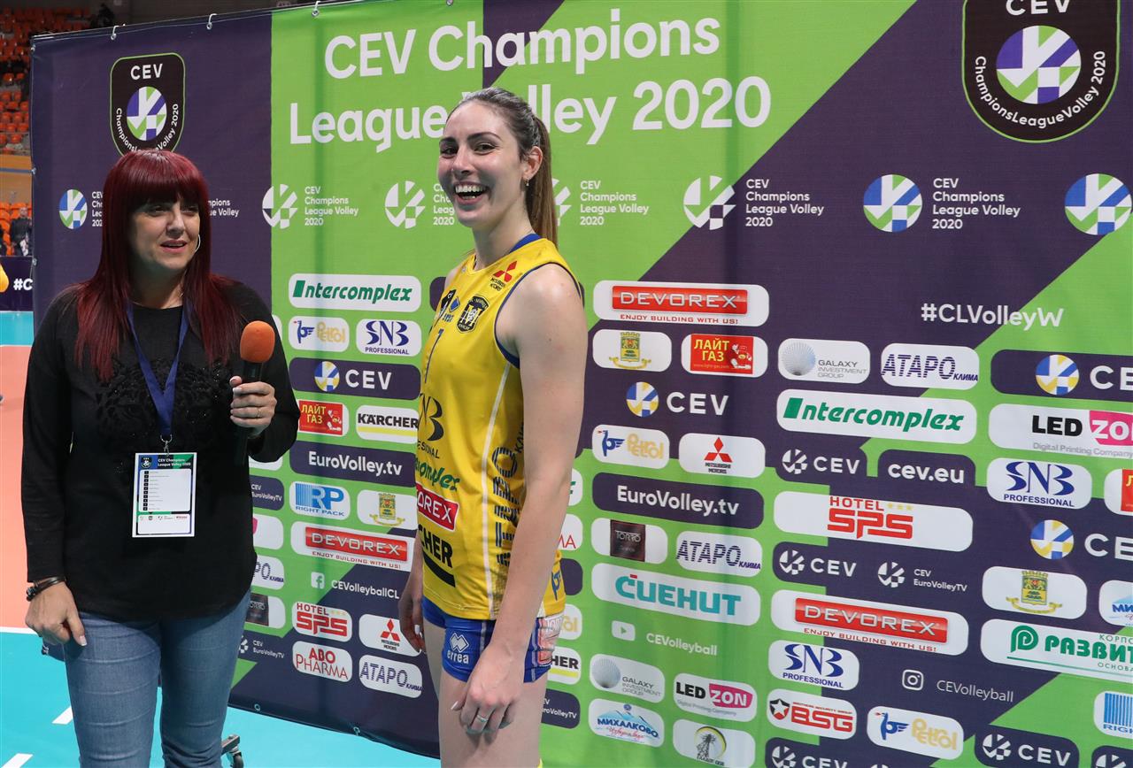 Yana Shcherban, outside hitter of Dinamo MOSCOW: "Congratulations to our team for the victory! I would like to note that the team of Maritza played very well in defense and had a very good game today. It was also hard to play against them, because they attack very fast, so I am glad that we got the three points."