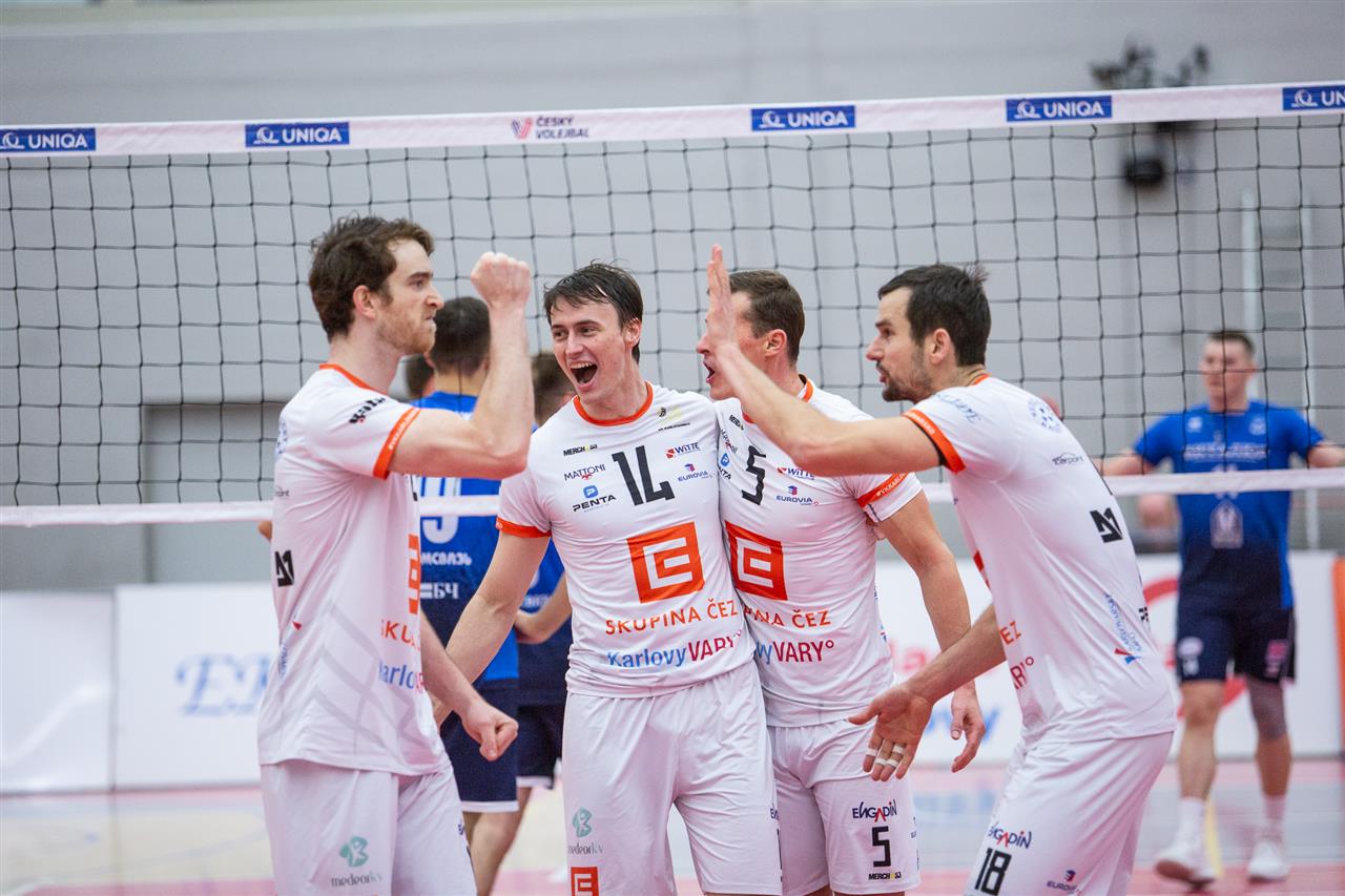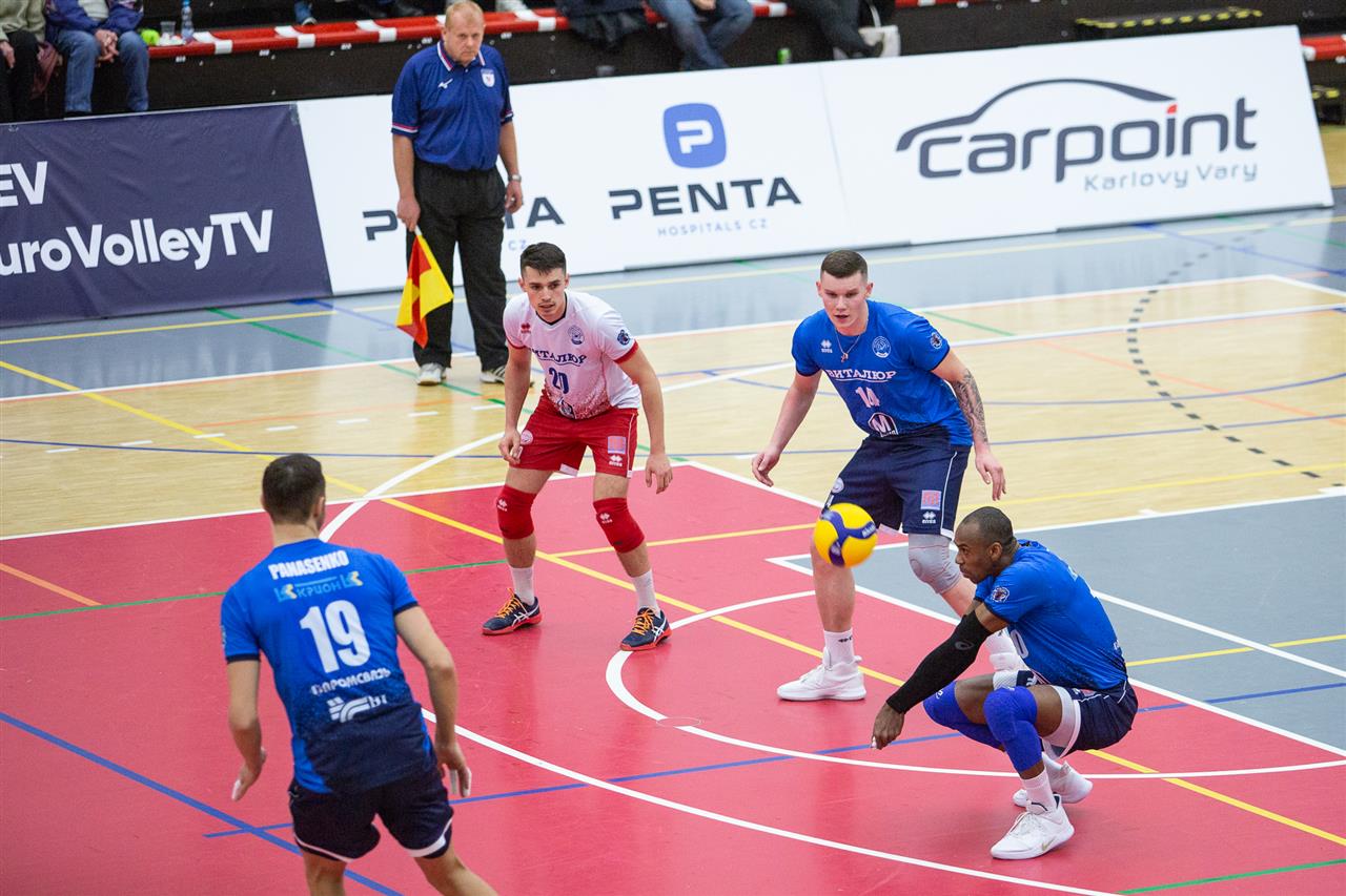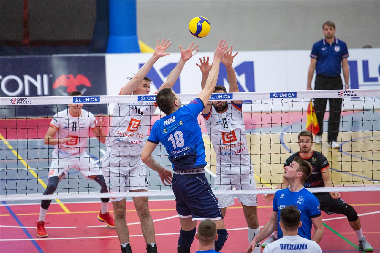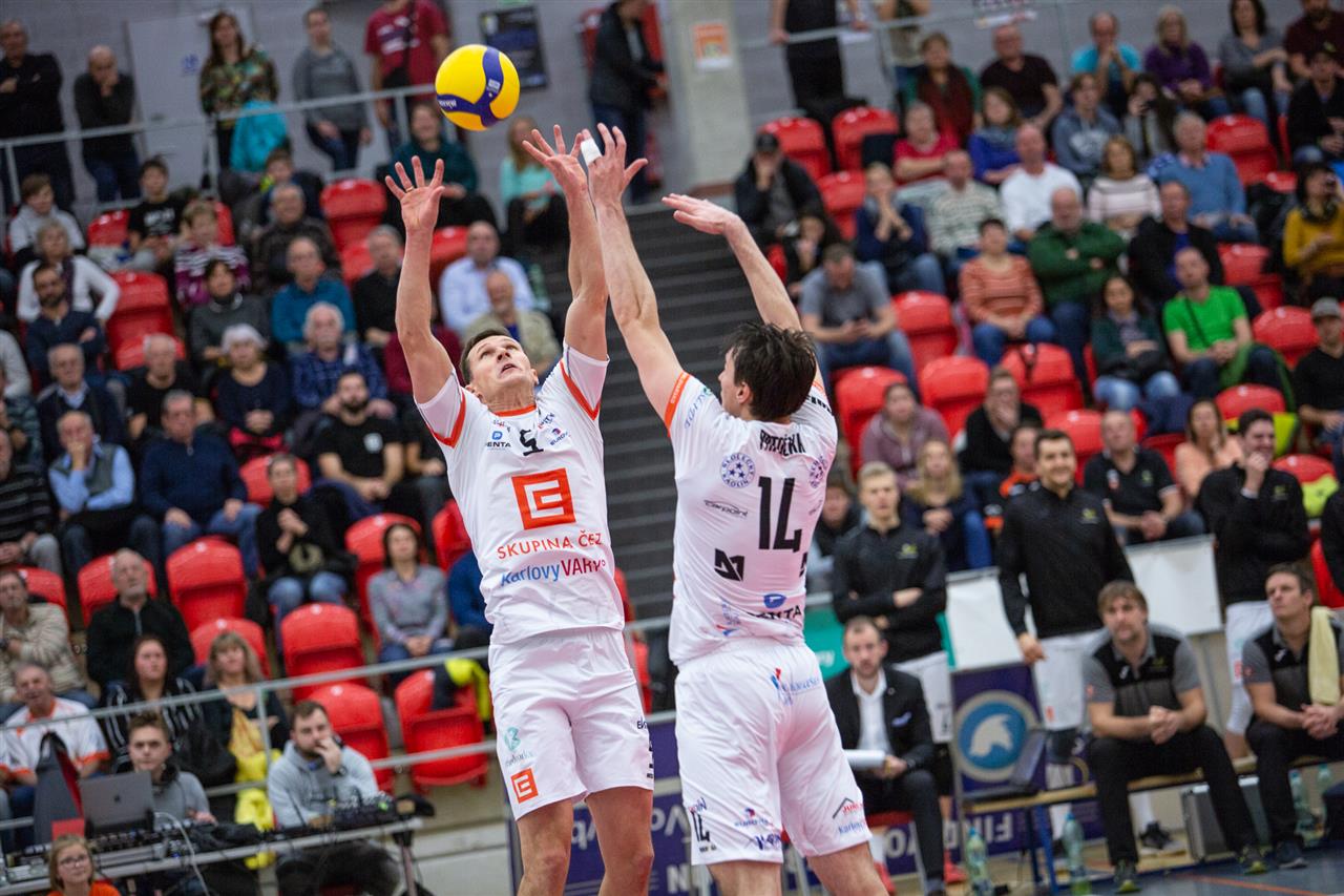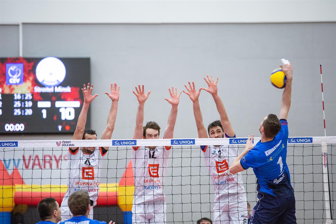 The number of successful point winning blocks of VK ČEZ KARLOVARSKO compared to Stroitel MINSK.