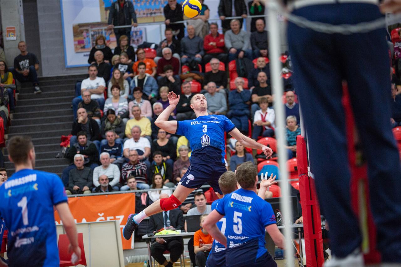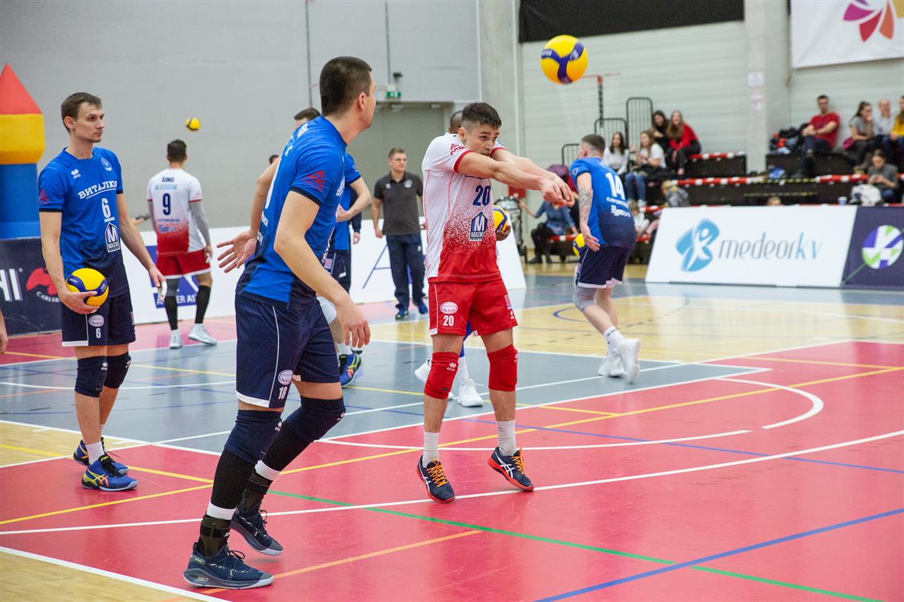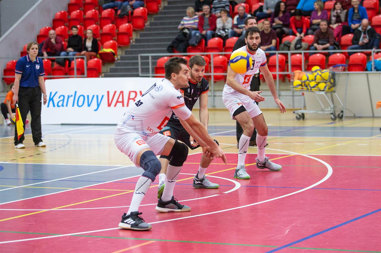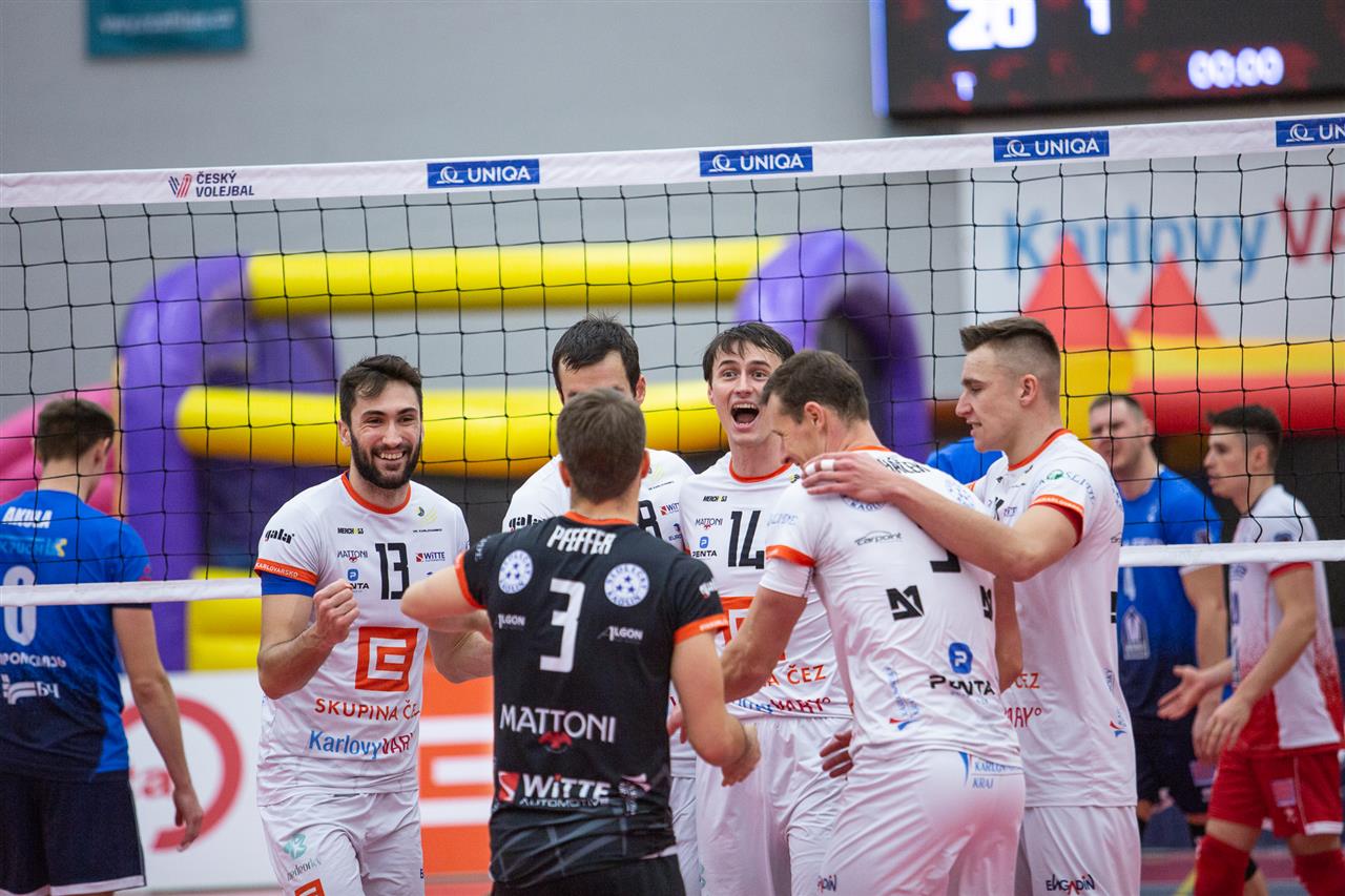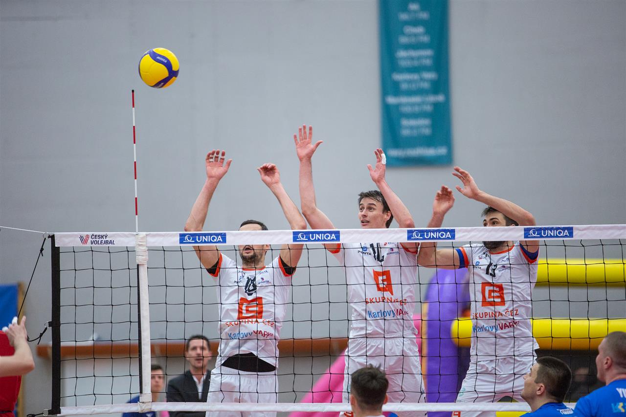 The number of successful point winning blocks of VK ČEZ KARLOVARSKO compared to Stroitel MINSK.