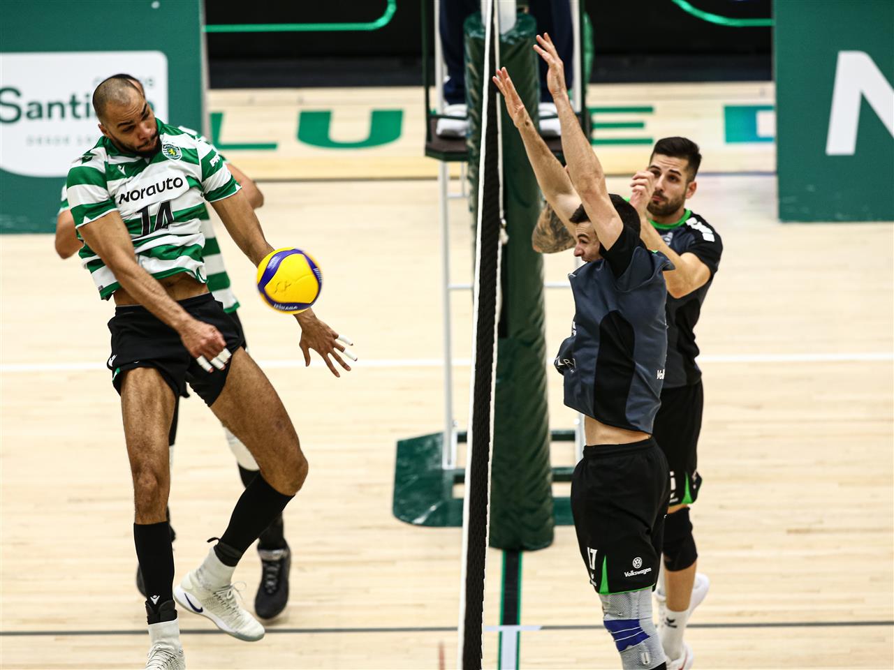 The number of successful point winning blocks of Sporting Club LISBOA compared to Penzügyör BUDAPEST.