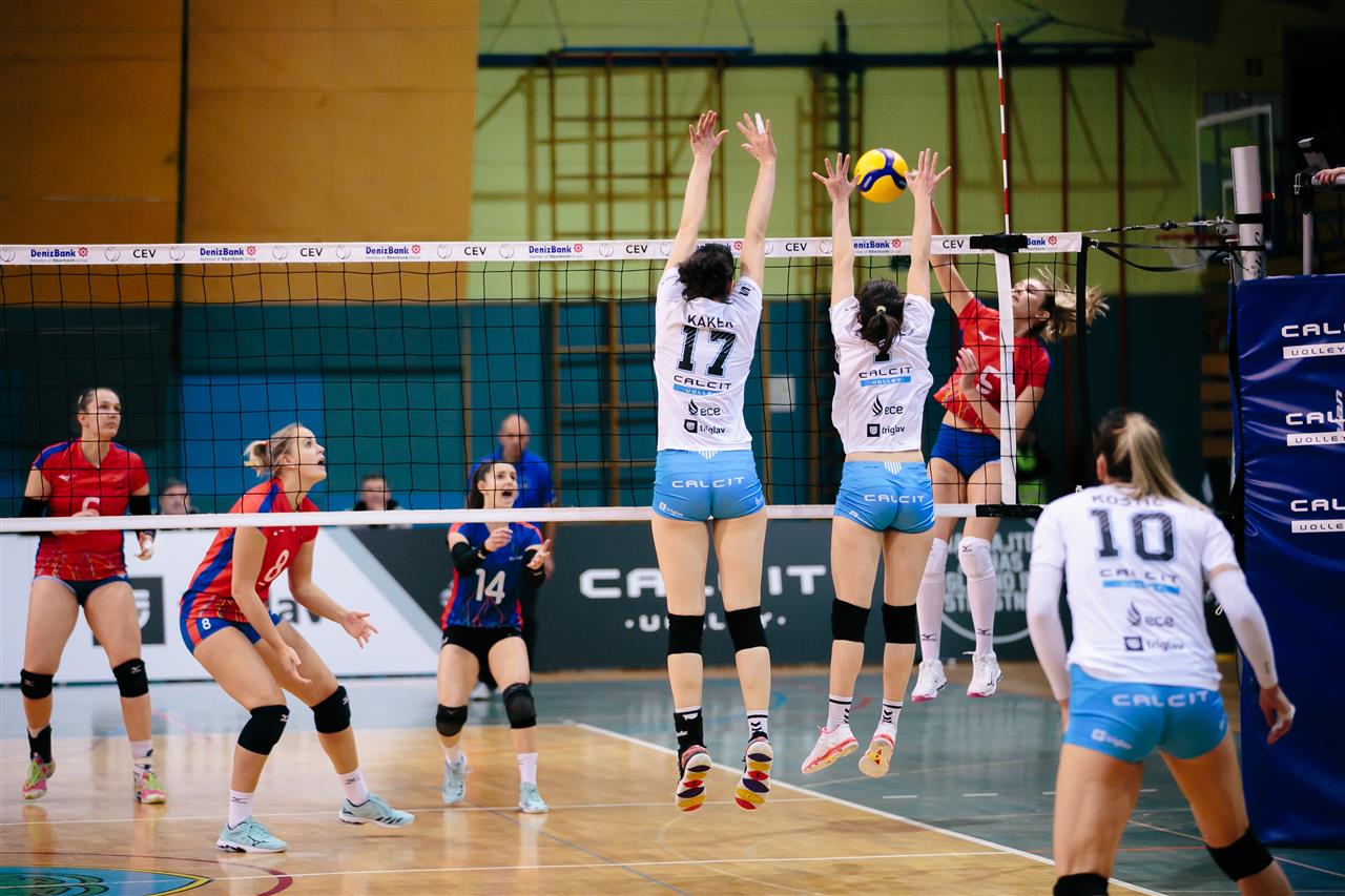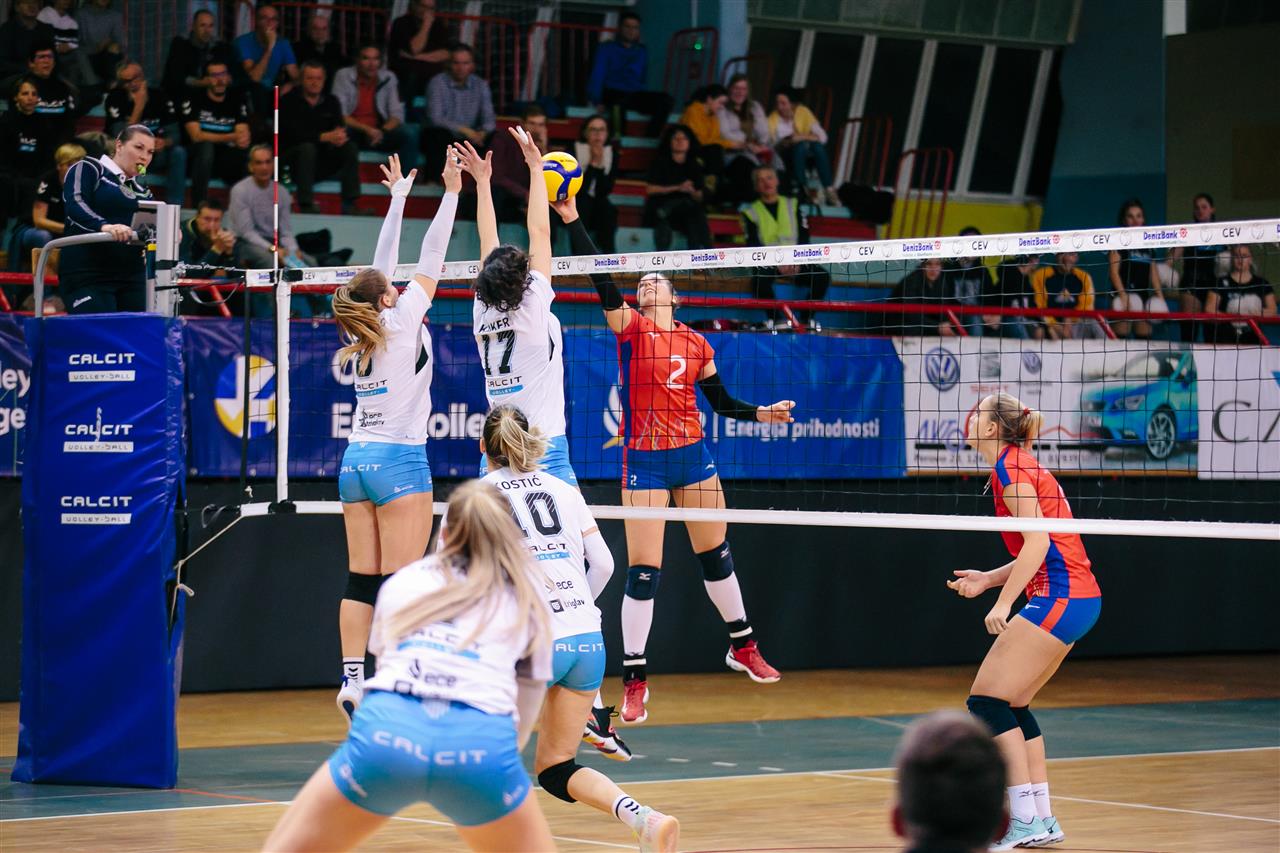 The number of successful point winning blocks of Calcit Volley KAMNIK compared to PVK Olymp PRAHA .