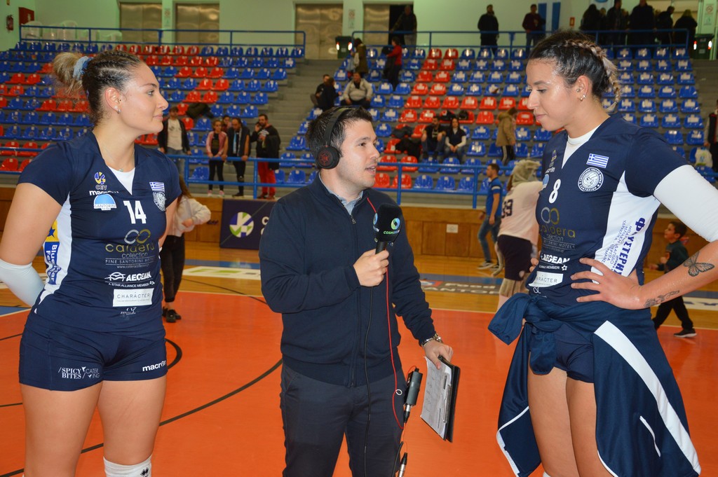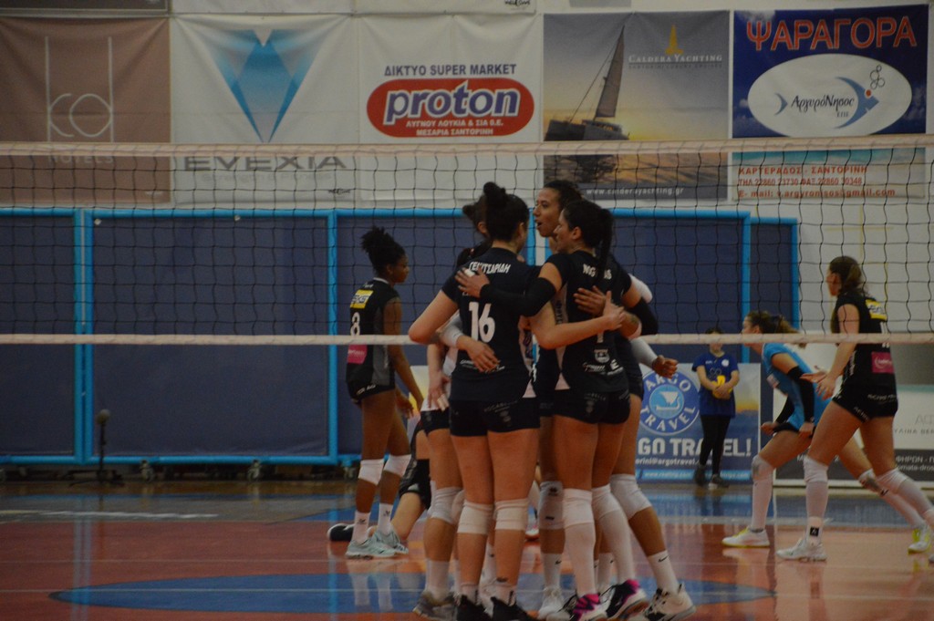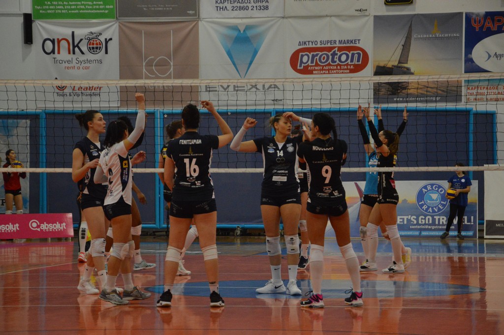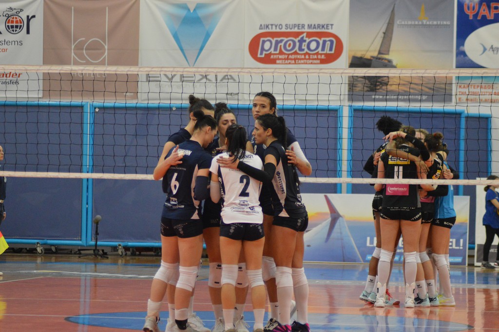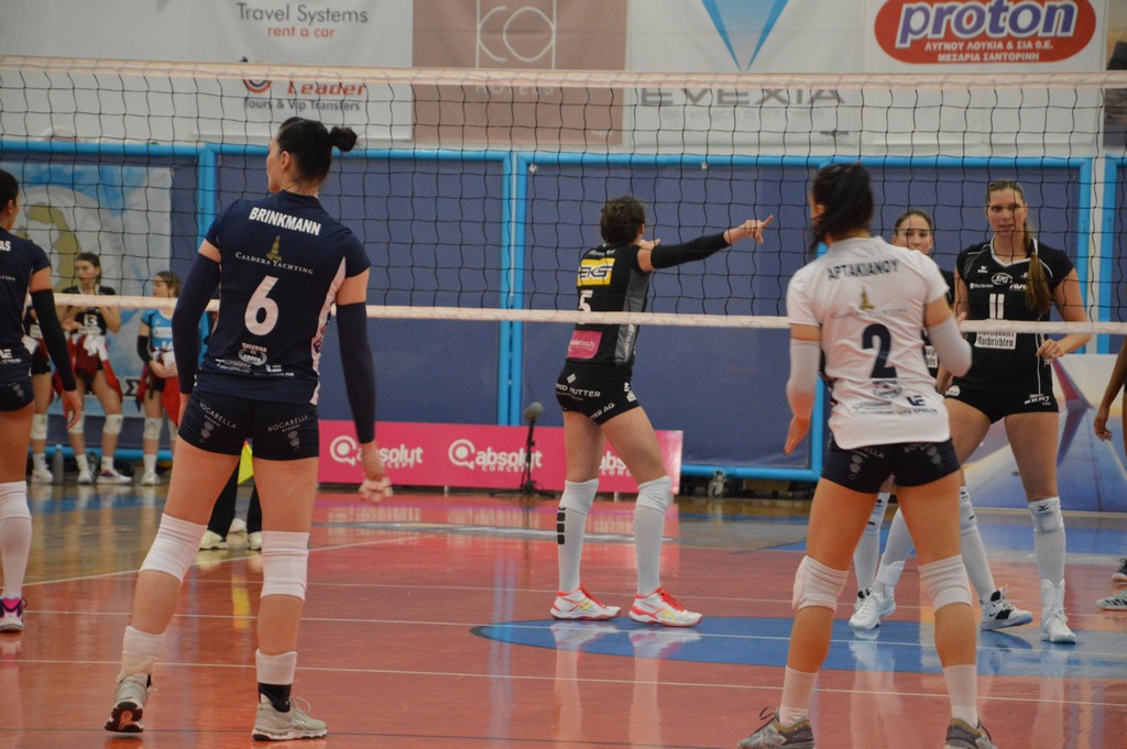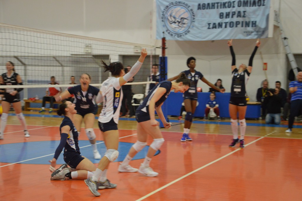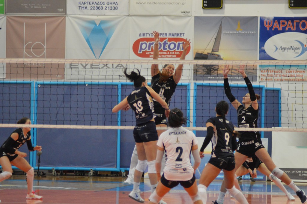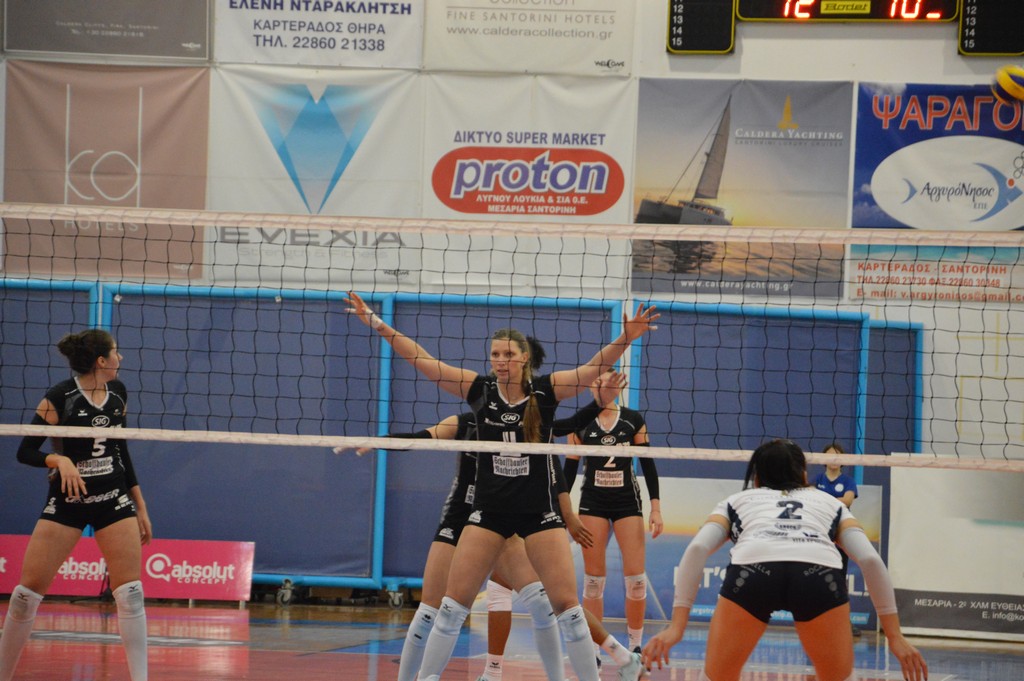 The number of successful point winning blocks of AO THIRAS Santorini compared to Kanti SCHAFFHAUSEN.