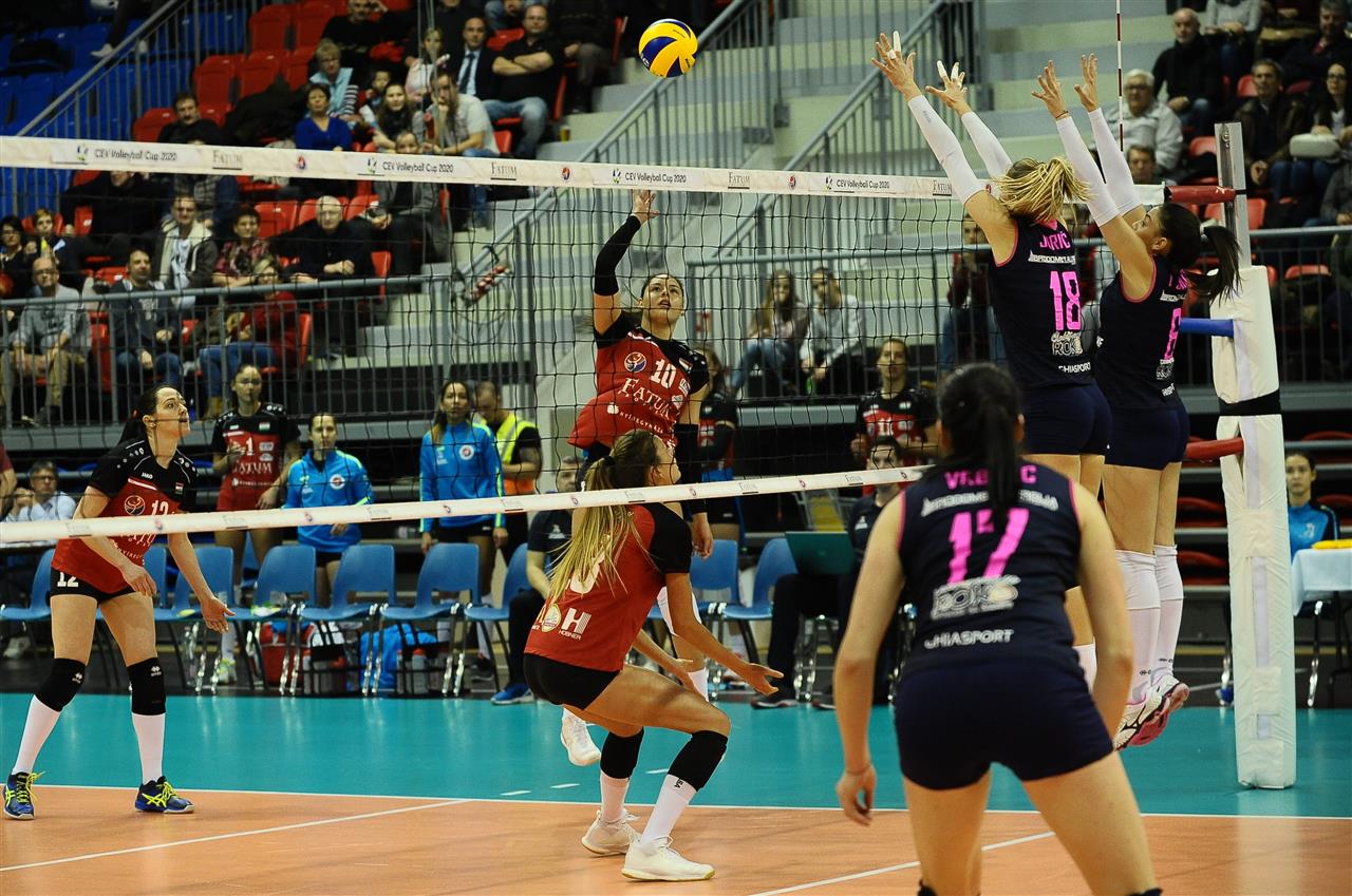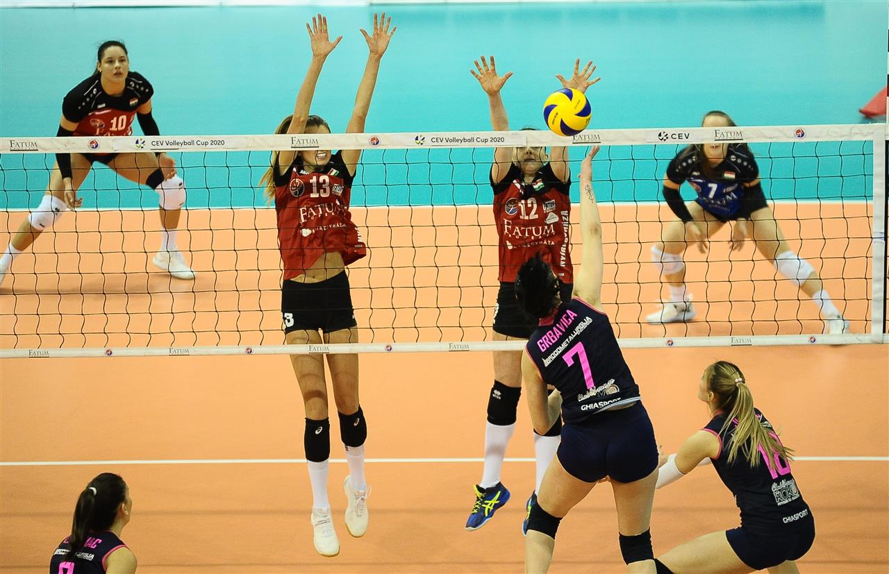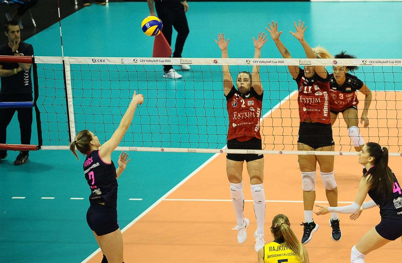 The number of successful point winning blocks of Fatum NYIREGYHAZA compared to Mladost ZAGREB.