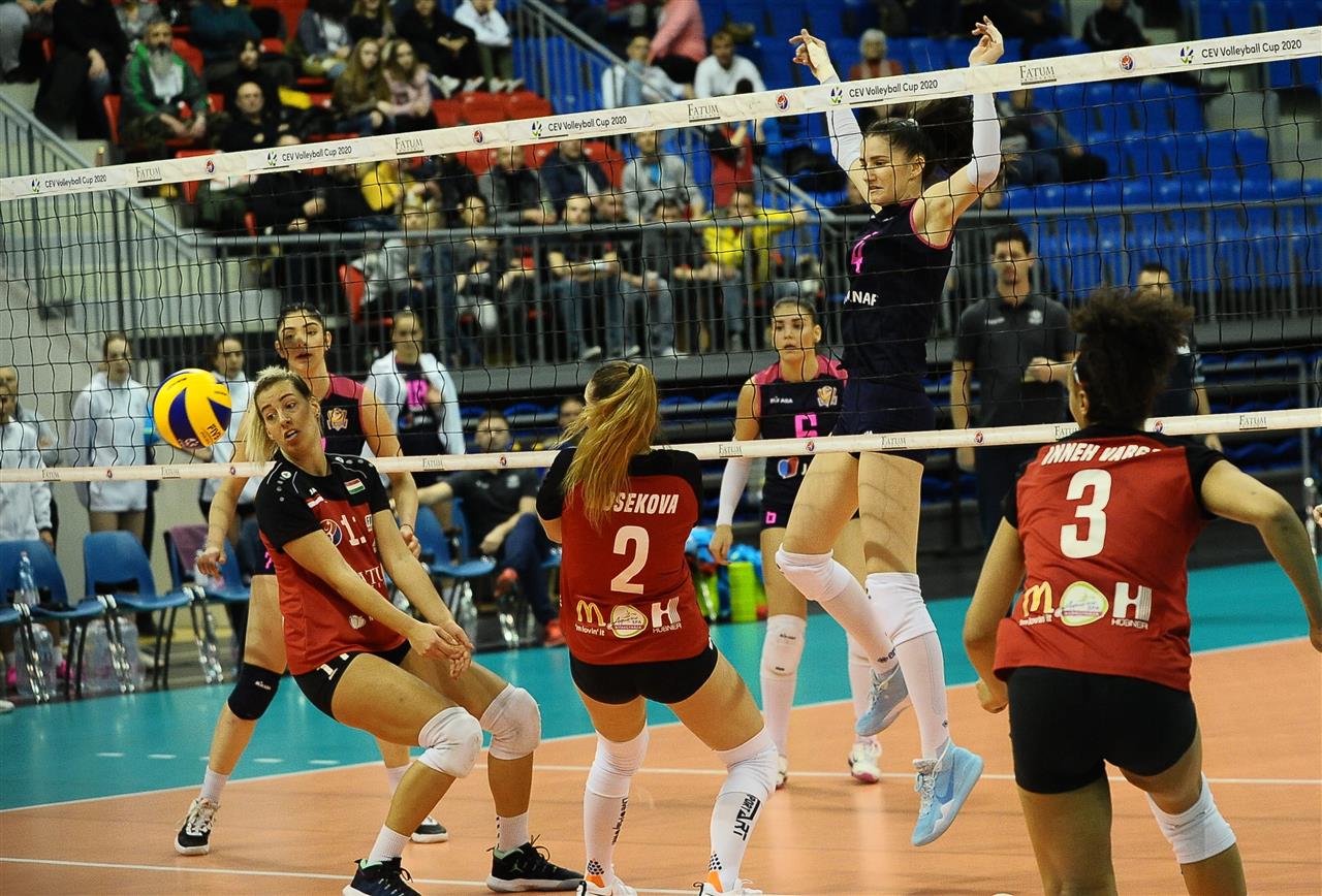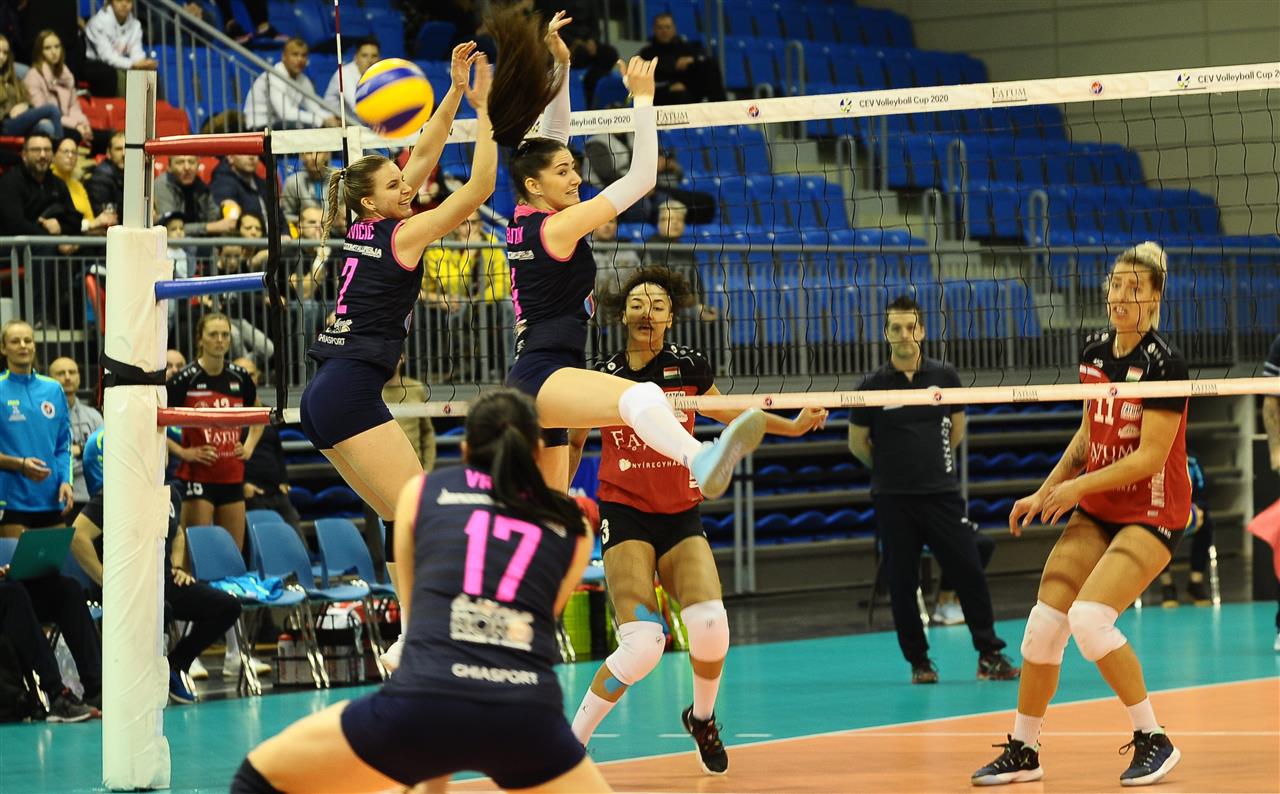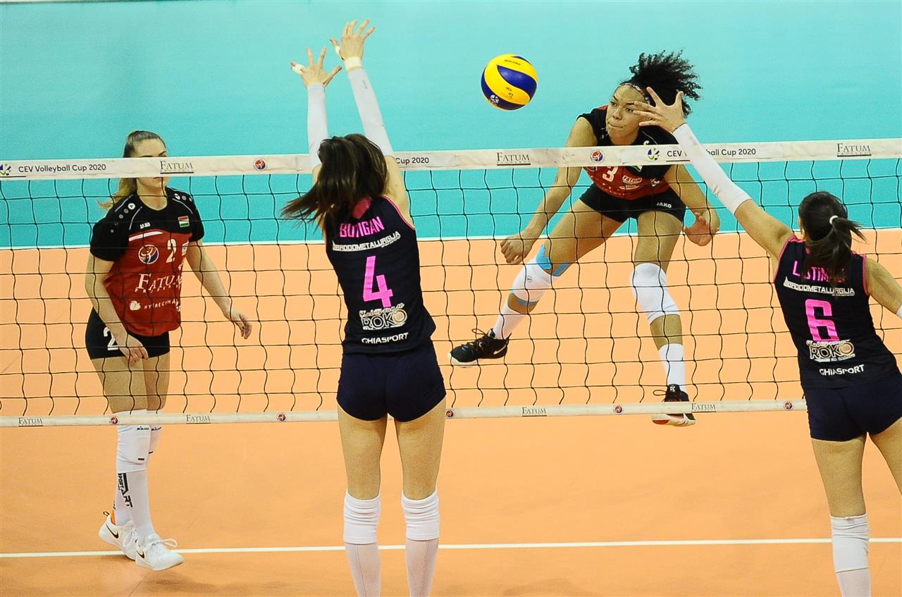 The number of successful point winning blocks of Fatum NYIREGYHAZA compared to Mladost ZAGREB.
