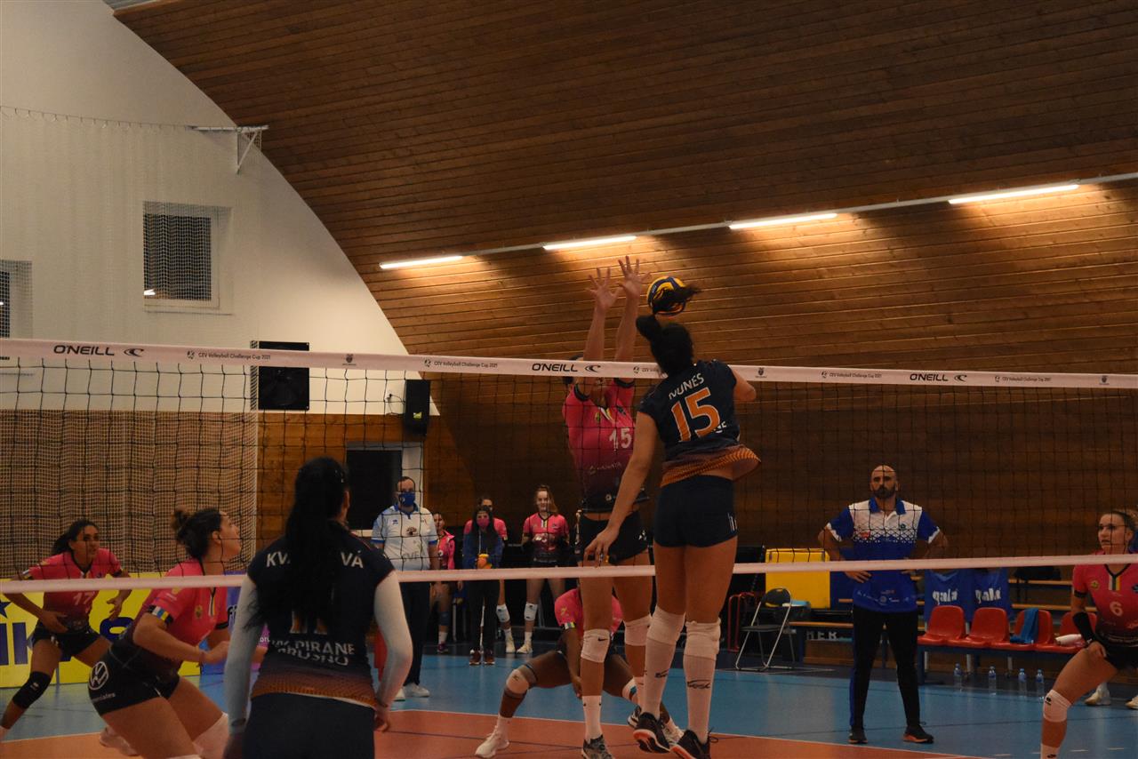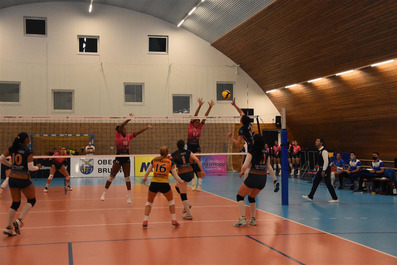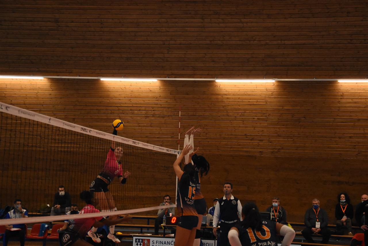The number of successful point winning blocks of VK Pirane BRUSNO compared to Sanaya Libby`s LA LAGUNA.