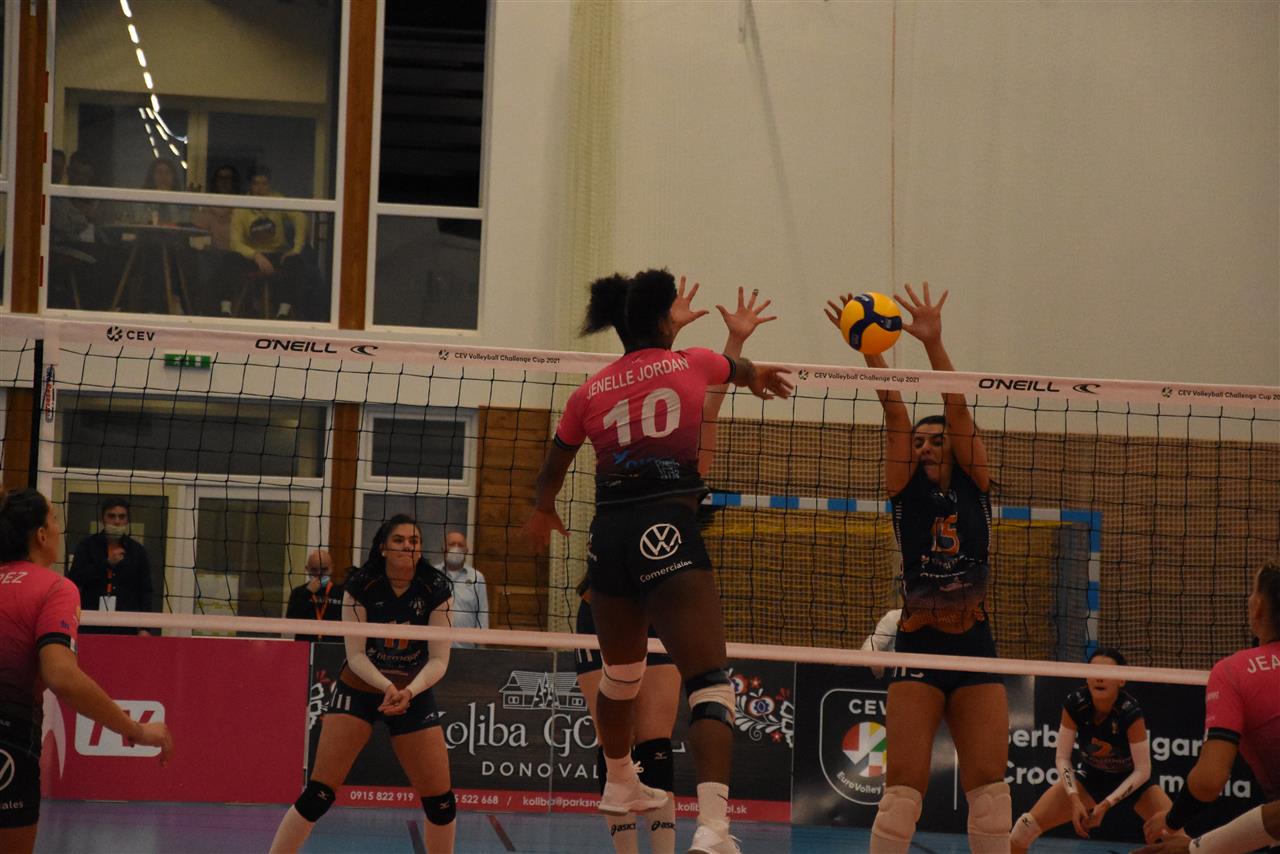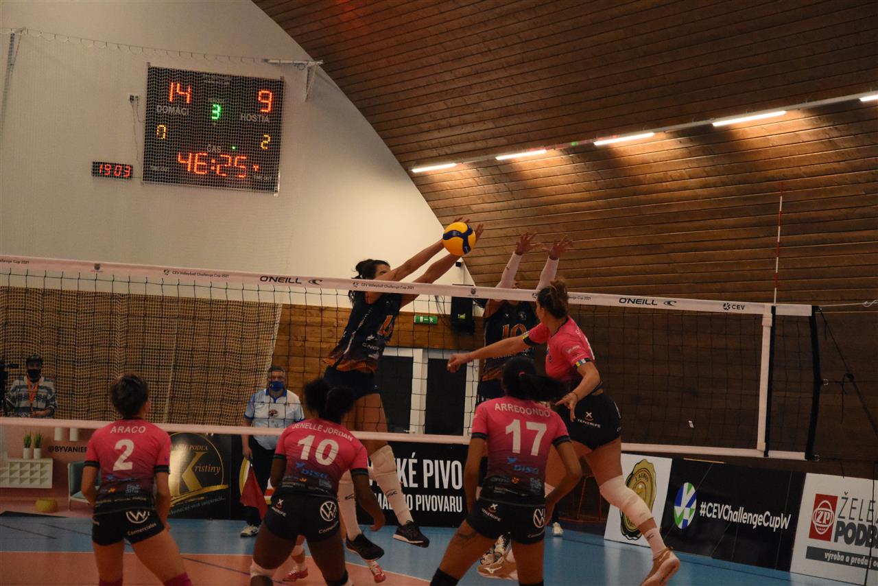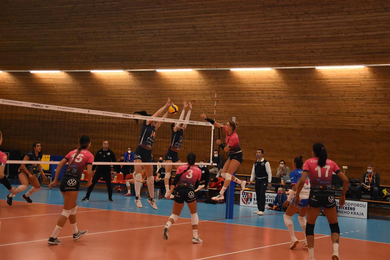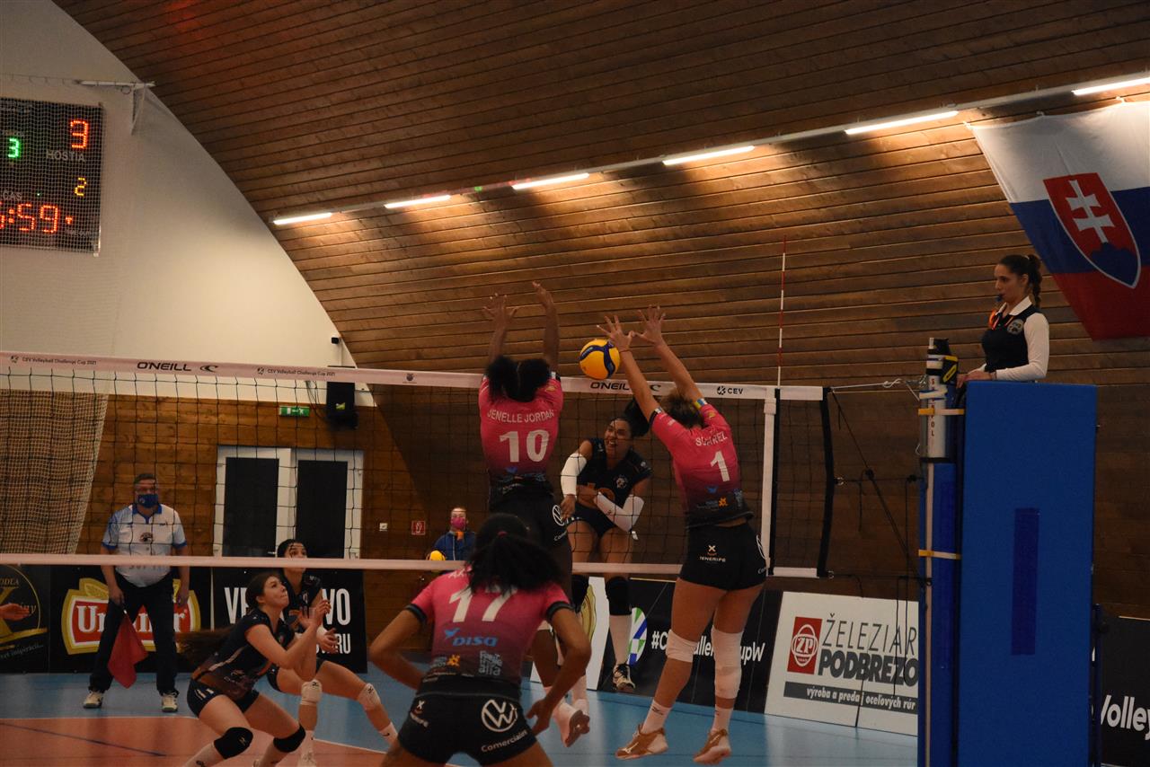 The number of successful point winning blocks of VK Pirane BRUSNO compared to Sanaya Libby`s LA LAGUNA.