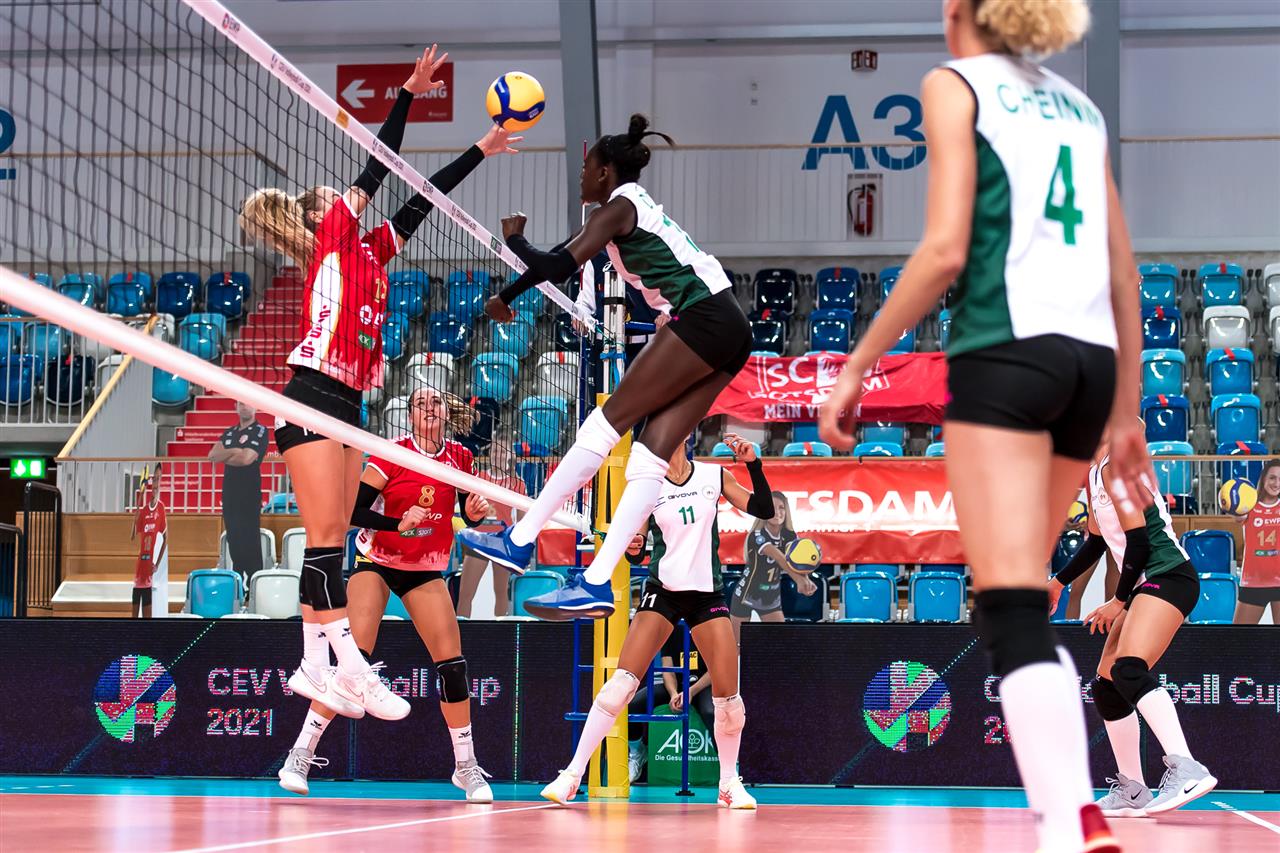 The number of successful point winning blocks of SC POTSDAM compared to Hapoel KFAR SABA.