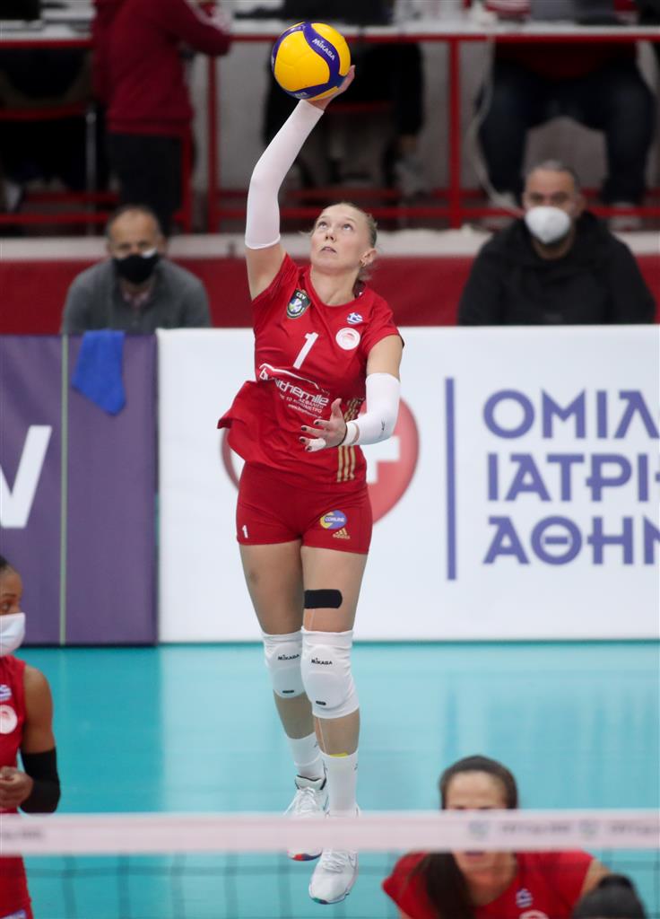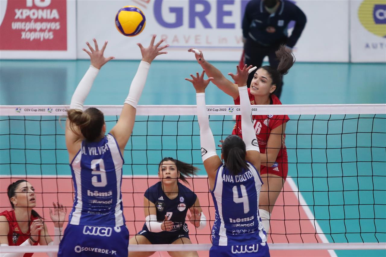 The number of successful point winning blocks of Olympiacos PIRAEUS compared to AJM FC PORTO.