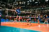 The combined total number of successful spikes achieved by both teams throughout the entire match.