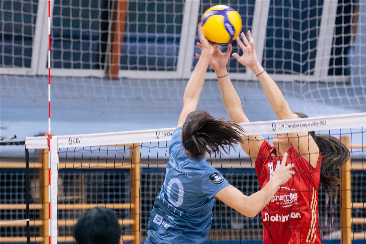 The number of successful point winning blocks of Calcit KAMNIK compared to Olympiacos PIRAEUS.