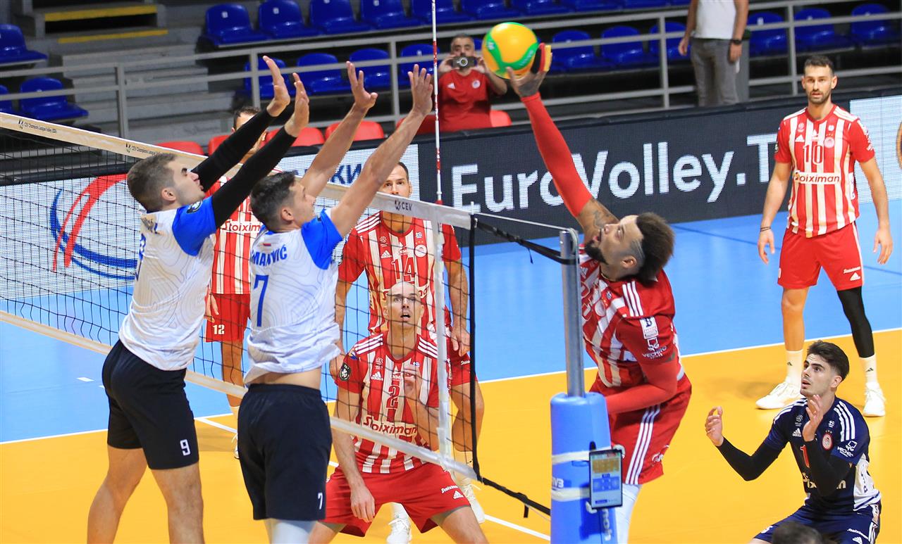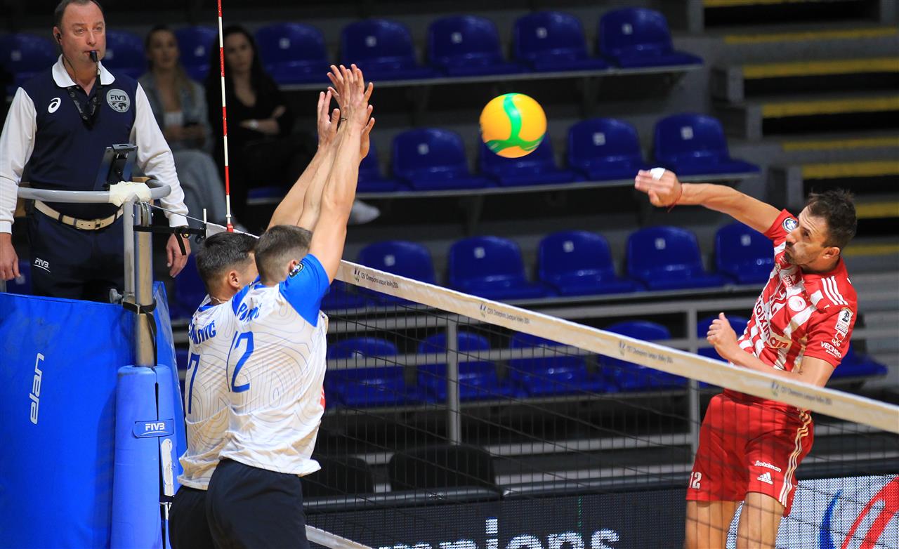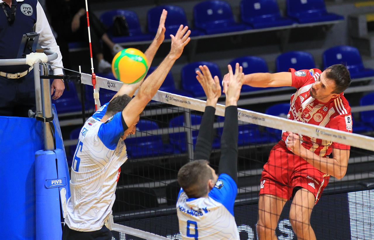 The number of successful point winning blocks of Olympiacos PIRAEUS compared to OK Radnik BIJELJINA.