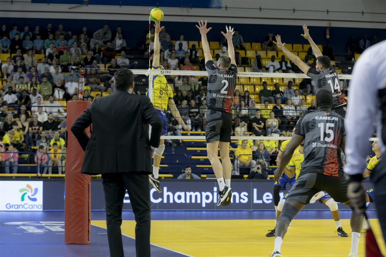 - The fourth set began differently from the previous ones, with the Canary team improving their service and attack levels. The Turks, as in the first set, could not control this, and the Guaguas again got a small early lead (10-8). The set continued, and visitor player number 2, Wouter Ter Maat, became prominent with his service, equaling the match at 13 with two good serves. Again, as in the second set, the points went back and forth until the middle of the set was tied at 20. The end of the set would be breathtaking, but once again, the defense of Ankara would prevail, being key to taking the match, which ended after a block that went out from the Guaguas (23-25).