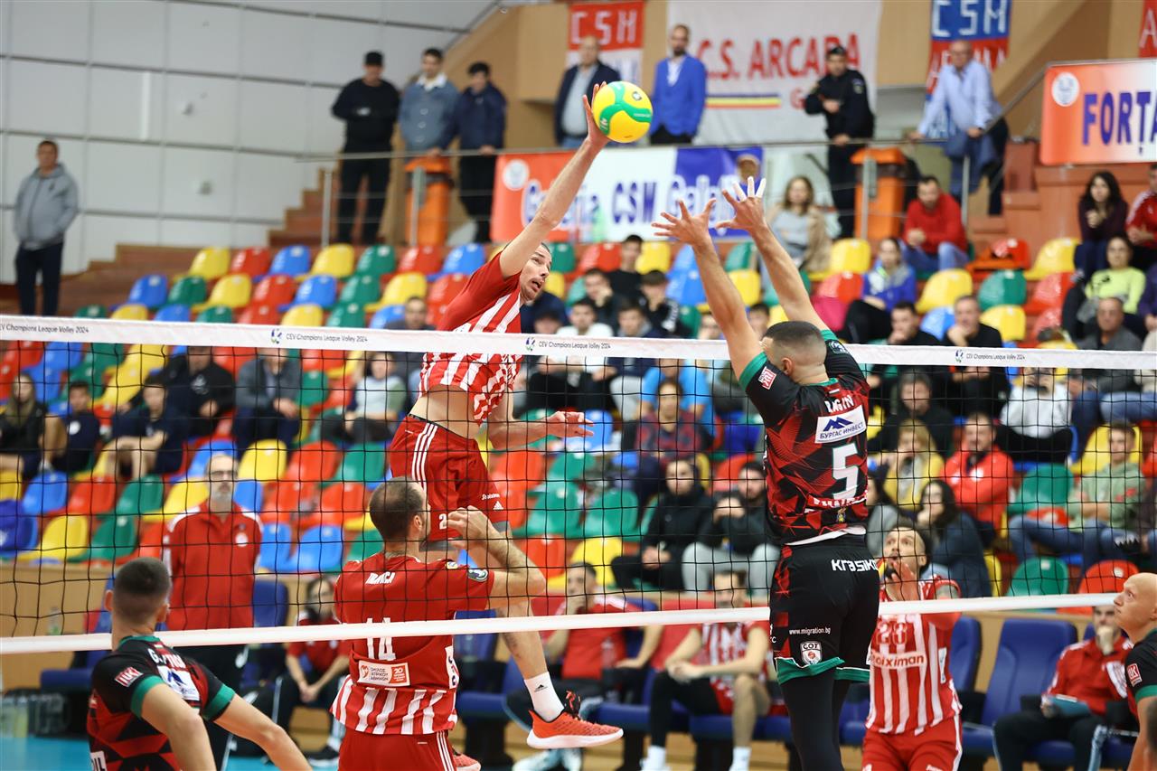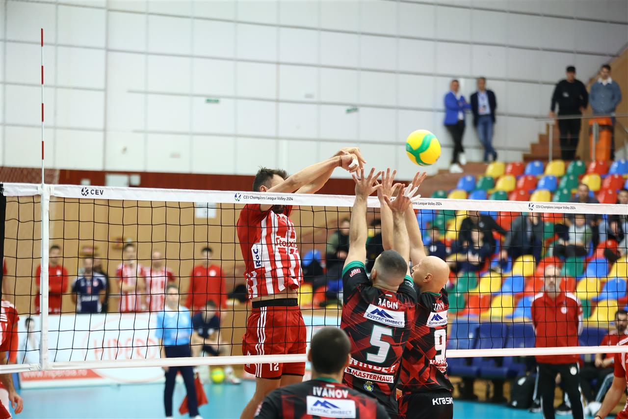 The number of successful point winning blocks of Olympiacos PIRAEUS compared to Neftohimik BURGAS.