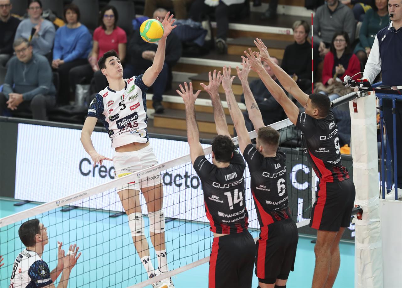 - Trentino Itas closes Pool B with a loss, its first at home, giving in at the tie break against Asseco Resovia Rzeszow, a team that already in the first set (accomplice to Tours' victory with Ljubljana) knew it had no more chances to pass the round but still played its game until the end, regaining the initial disadvantage, going ahead 2-1, before being caught up and winning in the fifth set.