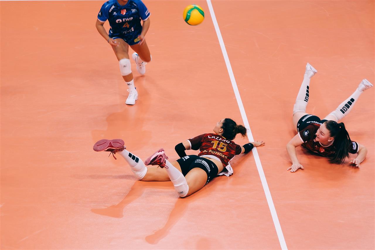 - In the initial encounter at Tivoli, Potsdam clinched a 3-2 victory (18:25, 25:23, 25:18, 23:25, 16:14), with Maša Pucelj spearheading Calcit Volley's effort with 27 points, while Danielle Harabin led Potsdam with 21 points.