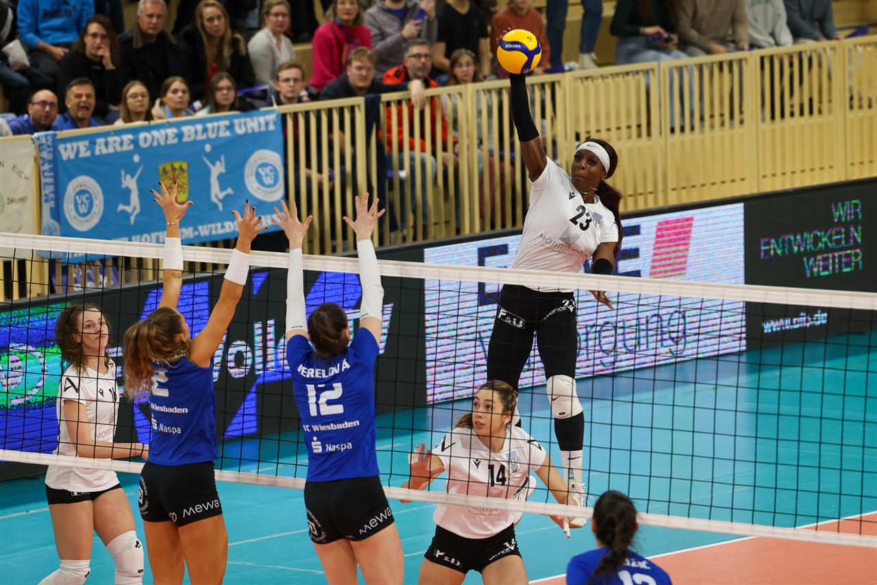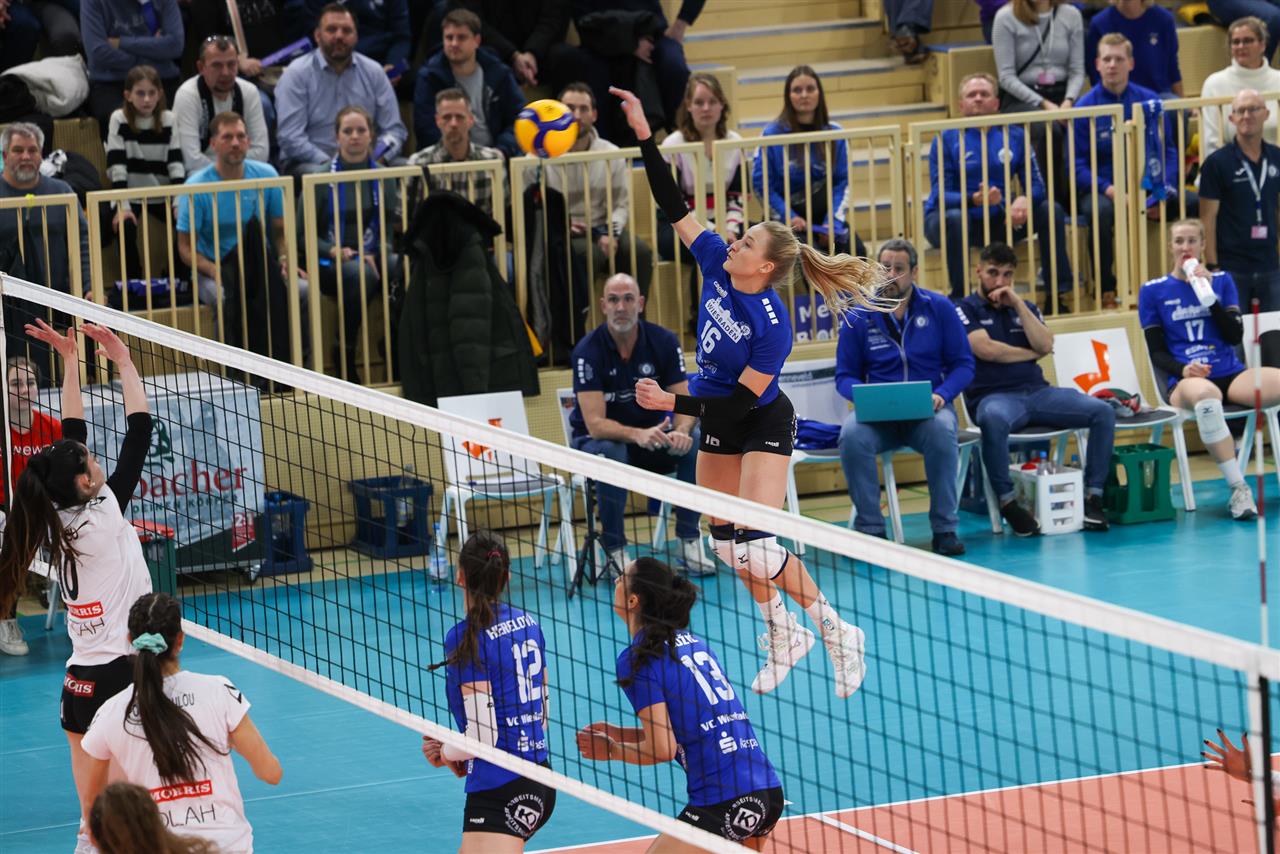 The number of successful point winning blocks of VC WIESBADEN compared to AC PAOK THESSALONIKI.