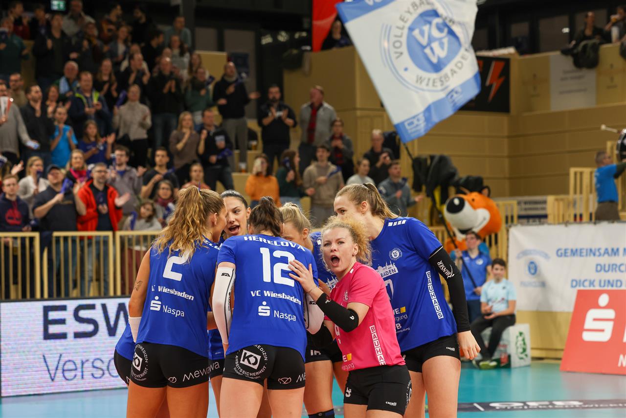 The number of successful point winning blocks of VC WIESBADEN compared to AC PAOK THESSALONIKI.