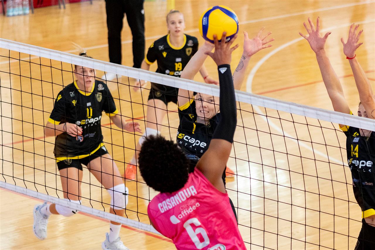 The number of successful point winning blocks of C.S.O. VOLUNTARI 2005 compared to AEK ATHENS.