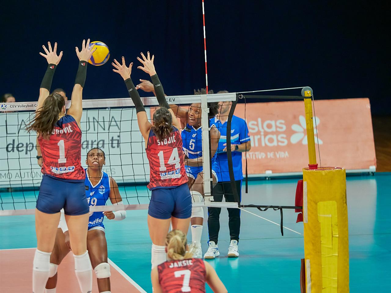 The number of successful point winning blocks of Tenerife Libby’s LA LAGUNA compared to Crvena Zvezda BEOGRAD.