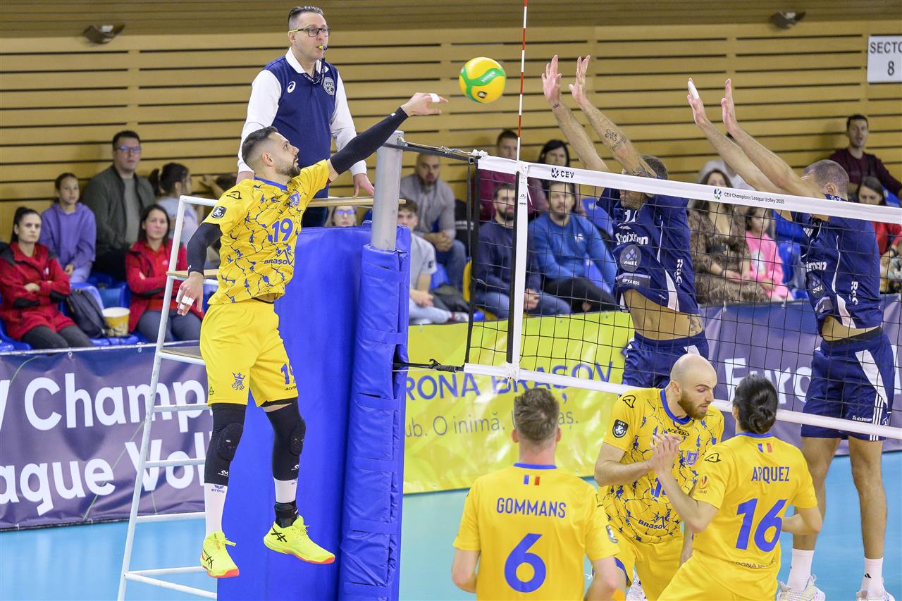 The number of successful point winning blocks of CSM Corona BRASOV compared to Olympiacos PIRAEUS.