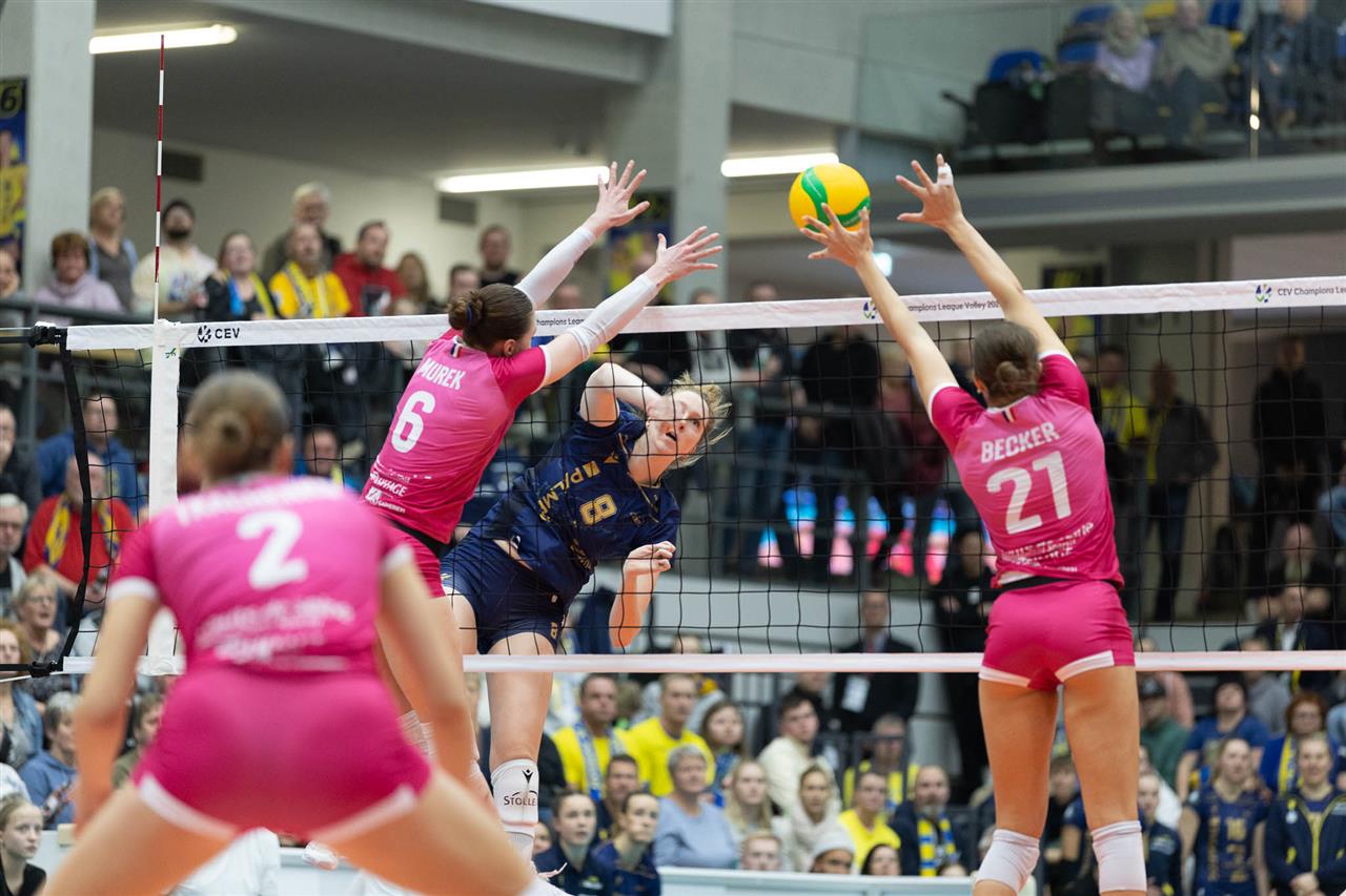 The number of successful point winning blocks of SSC Palmberg SCHWERIN compared to LEVALLOIS PARIS Saint Cloud.