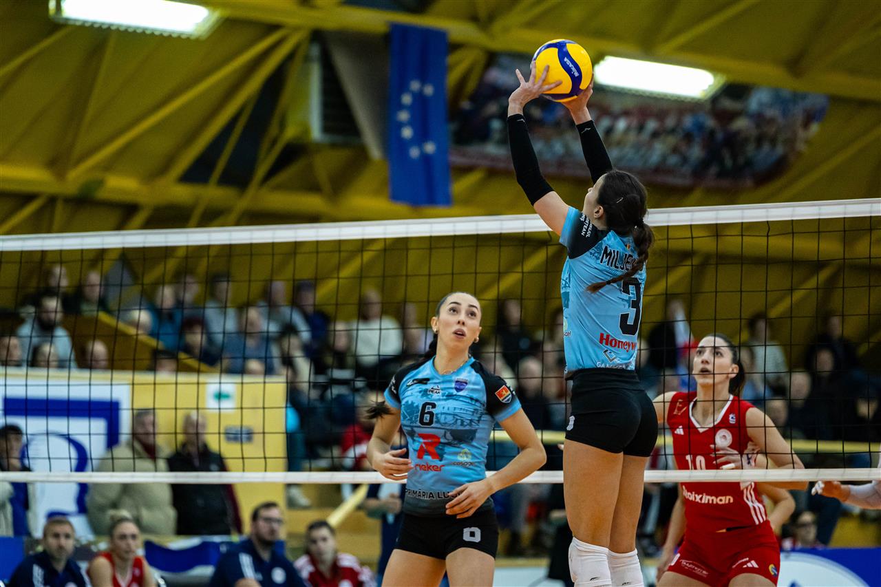 The number of successful point winning blocks of C.S.M. LUGOJ compared to Olympiacos PIRAEUS.