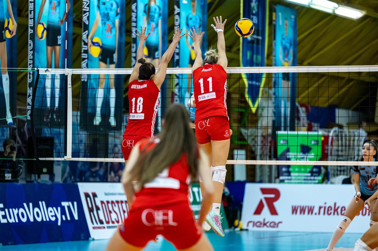 The number of successful point winning blocks of C.S.M. LUGOJ compared to Olympiacos PIRAEUS.