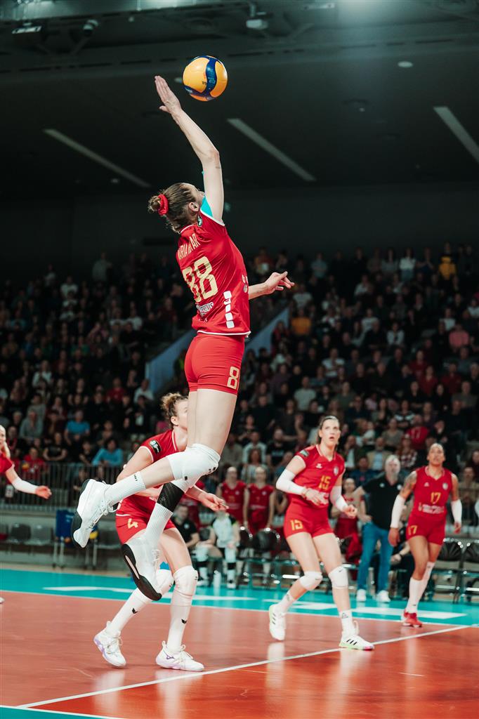 The combined total number of successful spikes achieved by both teams throughout the entire match.