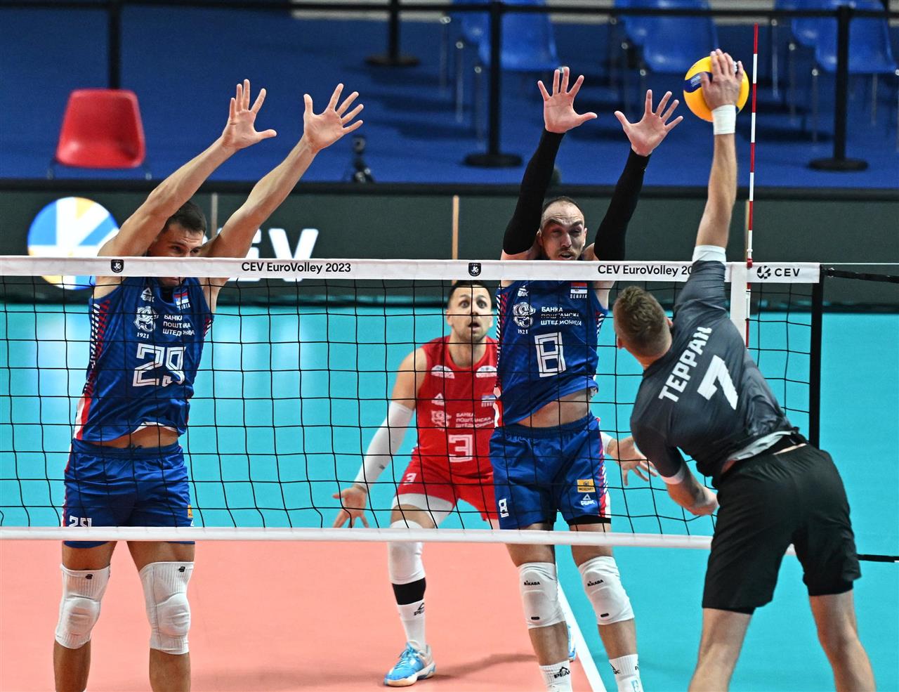The number of successful point winning blocks of SERBIA compared to ESTONIA.