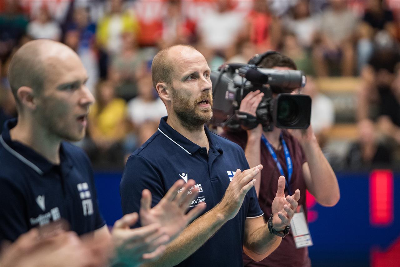The Czechs were lucky to get the opening point of the match when, after an inaccurate reception by the home team, the Finnish blocker smashed the ball over the line. After the Finns equalized, Mlejnková hit a hard shot. In an even opening game, both teams regularly took turns in gaining points, with points coming mainly after attacks. Orvošová and Kossanyiová asserted themselves, and Bjärregard-Madsen on the Finnish side. The Finnish players scored a point block at 9:9, later at 11:12. An exchange later, the Finns gained a two-point advantage for the first time in the match and the Czech coach reacted with a timeout. The northerners managed to keep the lead, but they made mistakes on serve and after successful attacks by Mlejnková and Orvošová the home players managed to level the score at 16:16. Mlejnková managed to flip the score to the Czech side with a hard smash and after the first ace the Czechs led 20:18. In the end, only the home players were scoring points and after a block by Kossányiová, the opening set came to a set point. Koulisiani took advantage of the first one with a point block.