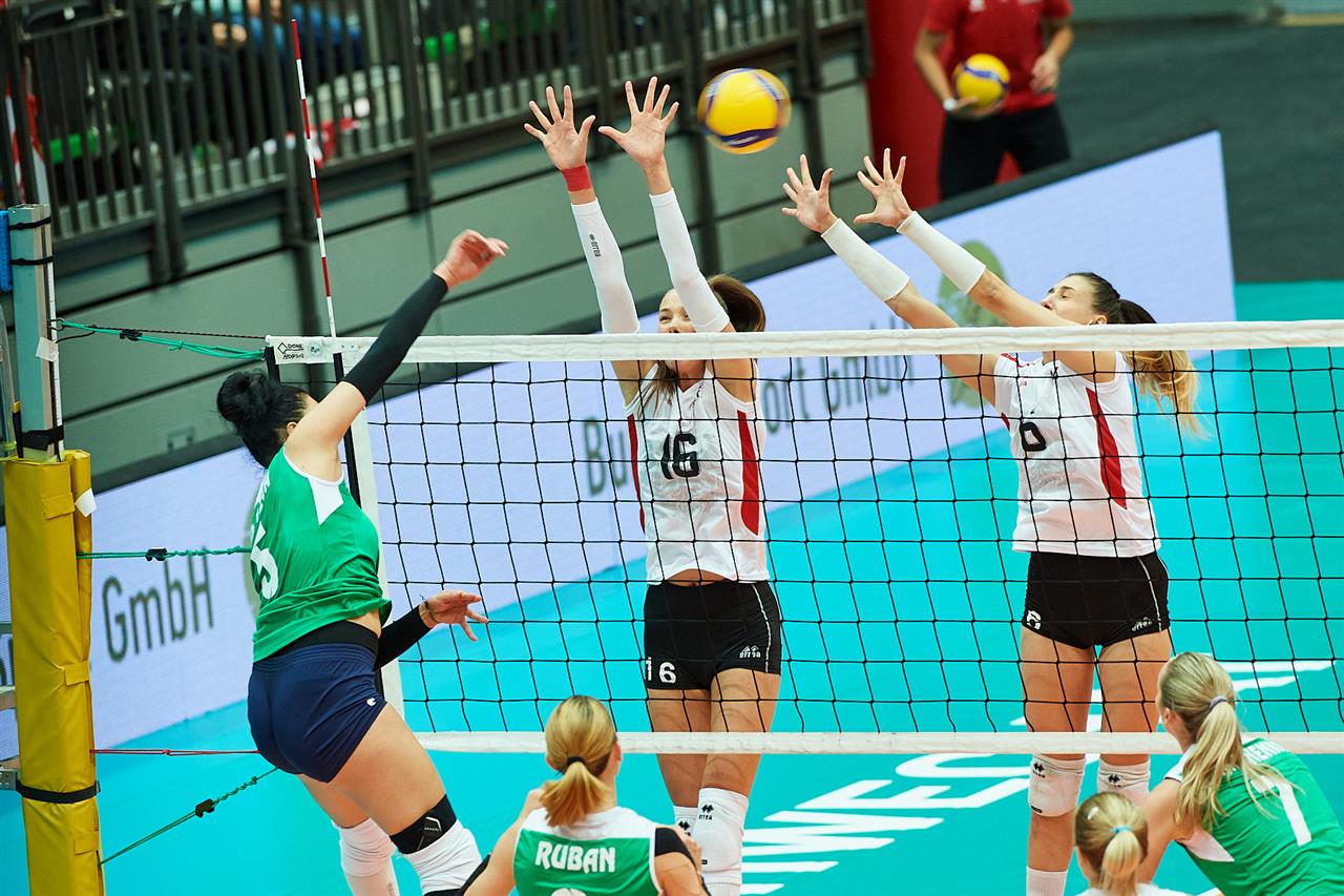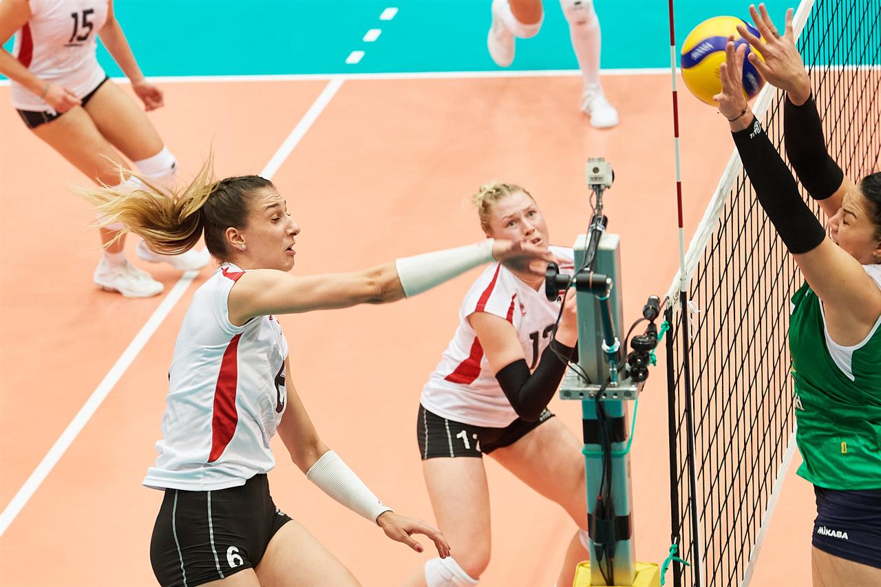 The combined total number of successful spikes achieved by both teams throughout the entire match.