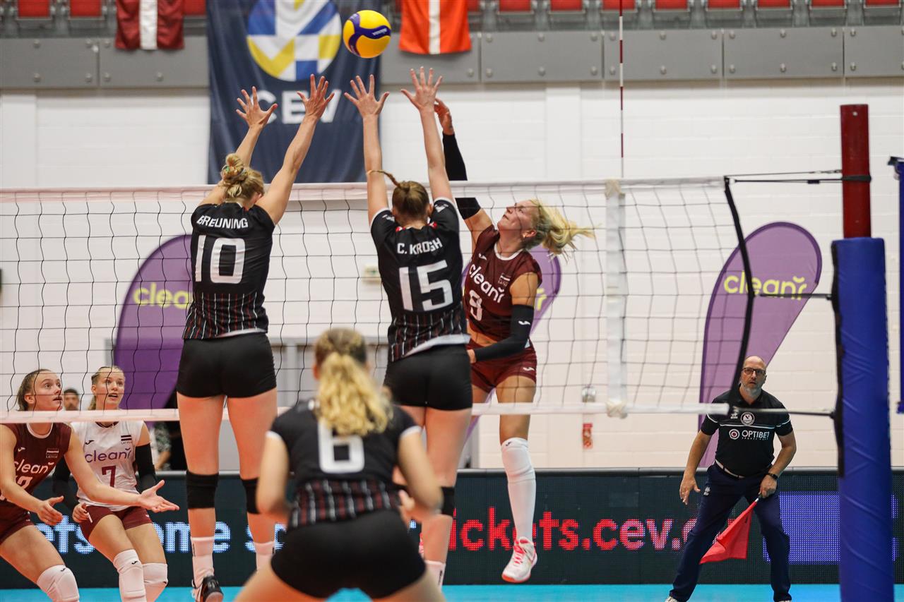 The number of successful point winning blocks of LATVIA compared to DENMARK.