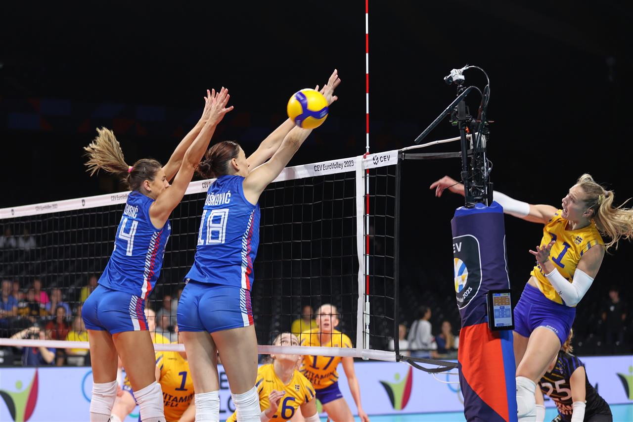 The number of successful point winning blocks of SERBIA compared to SWEDEN.
