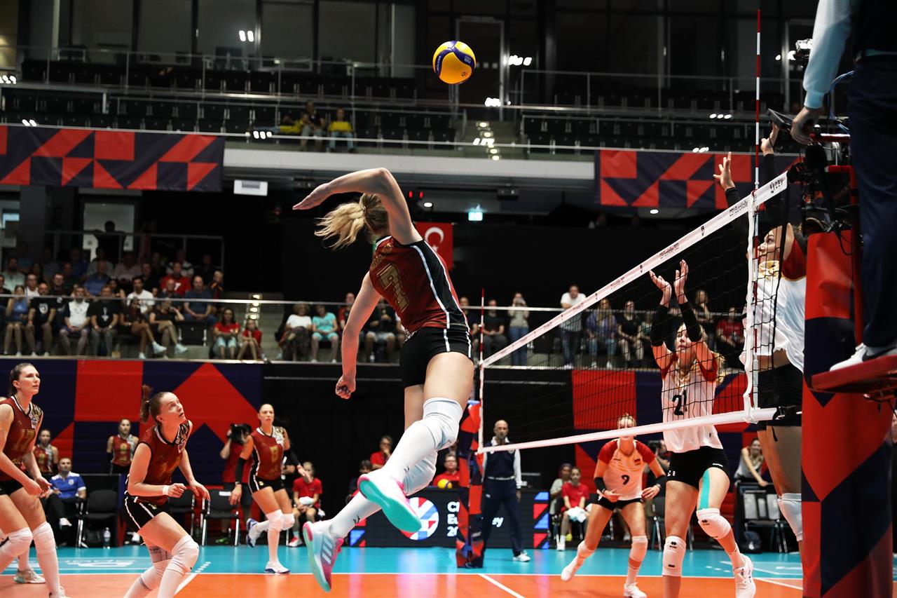 The combined total number of successful spikes achieved by both teams throughout the entire match.