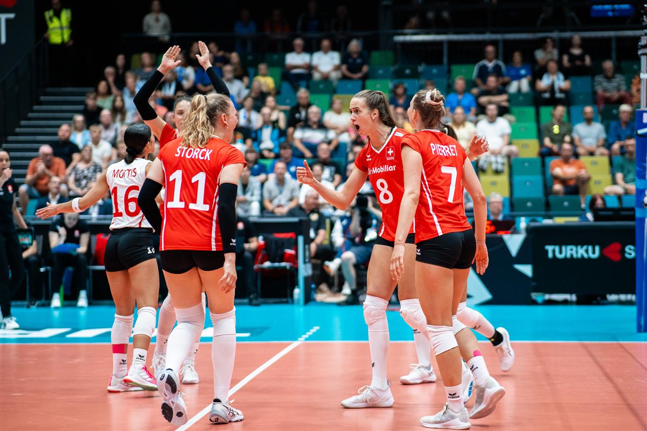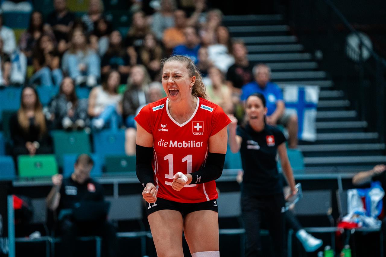 The number of successful point winning blocks of FINLAND compared to SWITZERLAND.