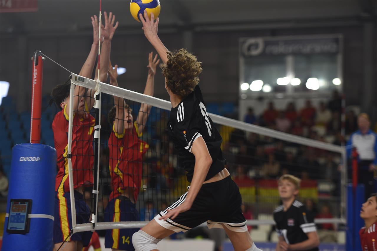 The combined total number of successful spikes achieved by both teams throughout the entire match.