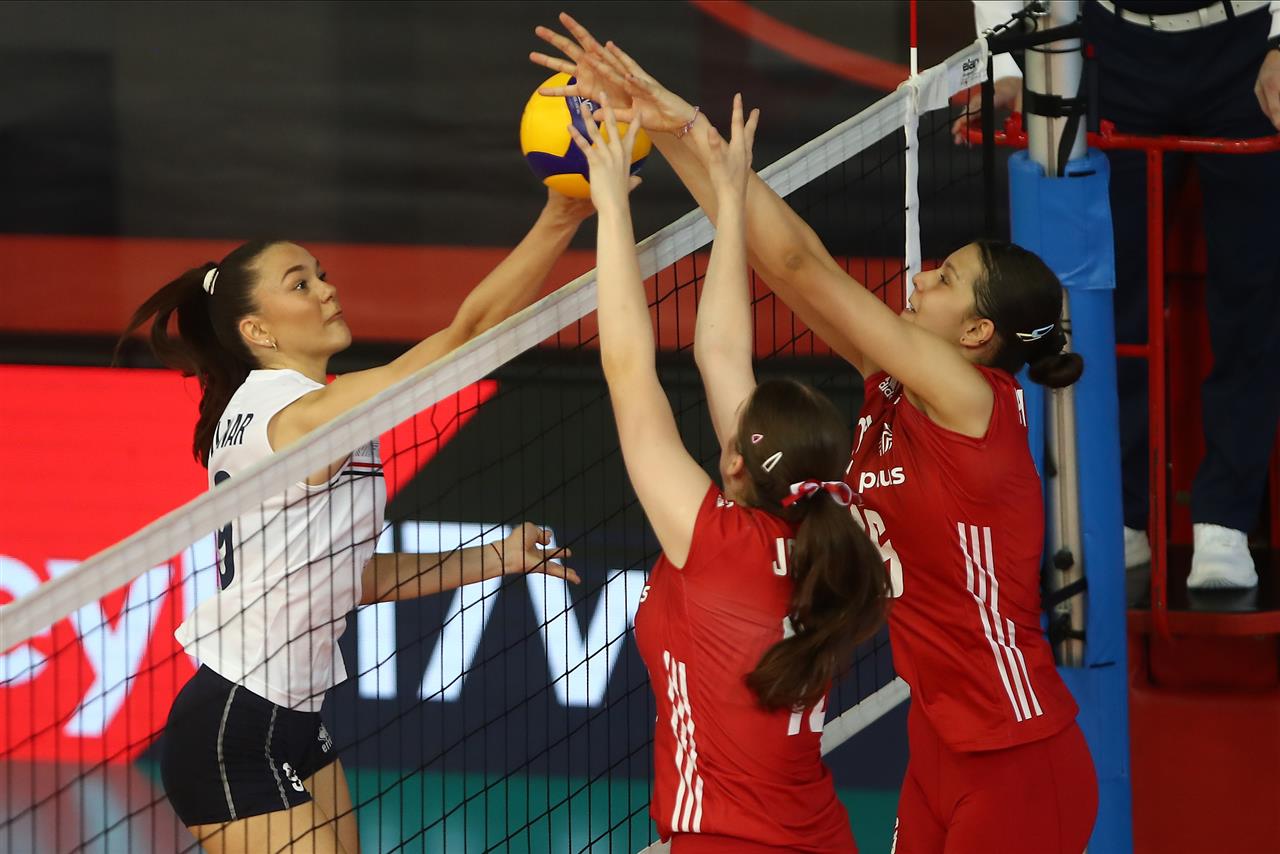 The combined total number of successful spikes achieved by both teams throughout the entire match.