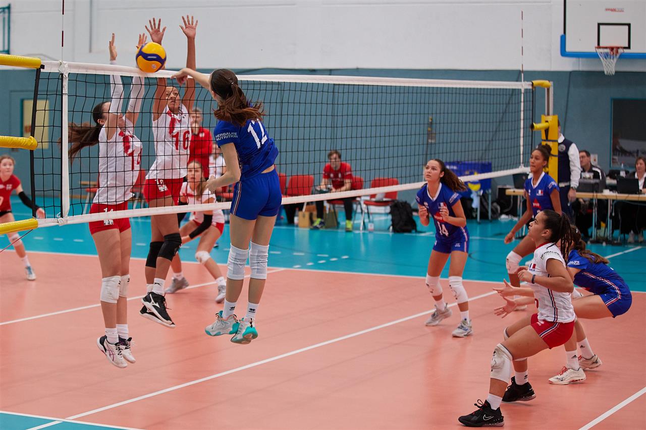 The number of successful point winning blocks of FRANCE compared to ENGLAND.