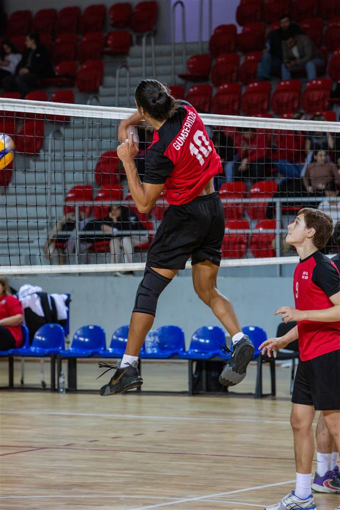 The combined total number of successful spikes achieved by both teams throughout the entire match.