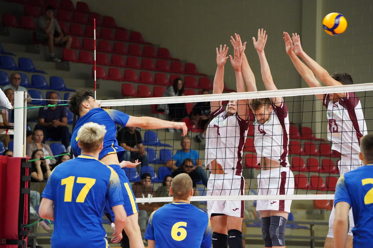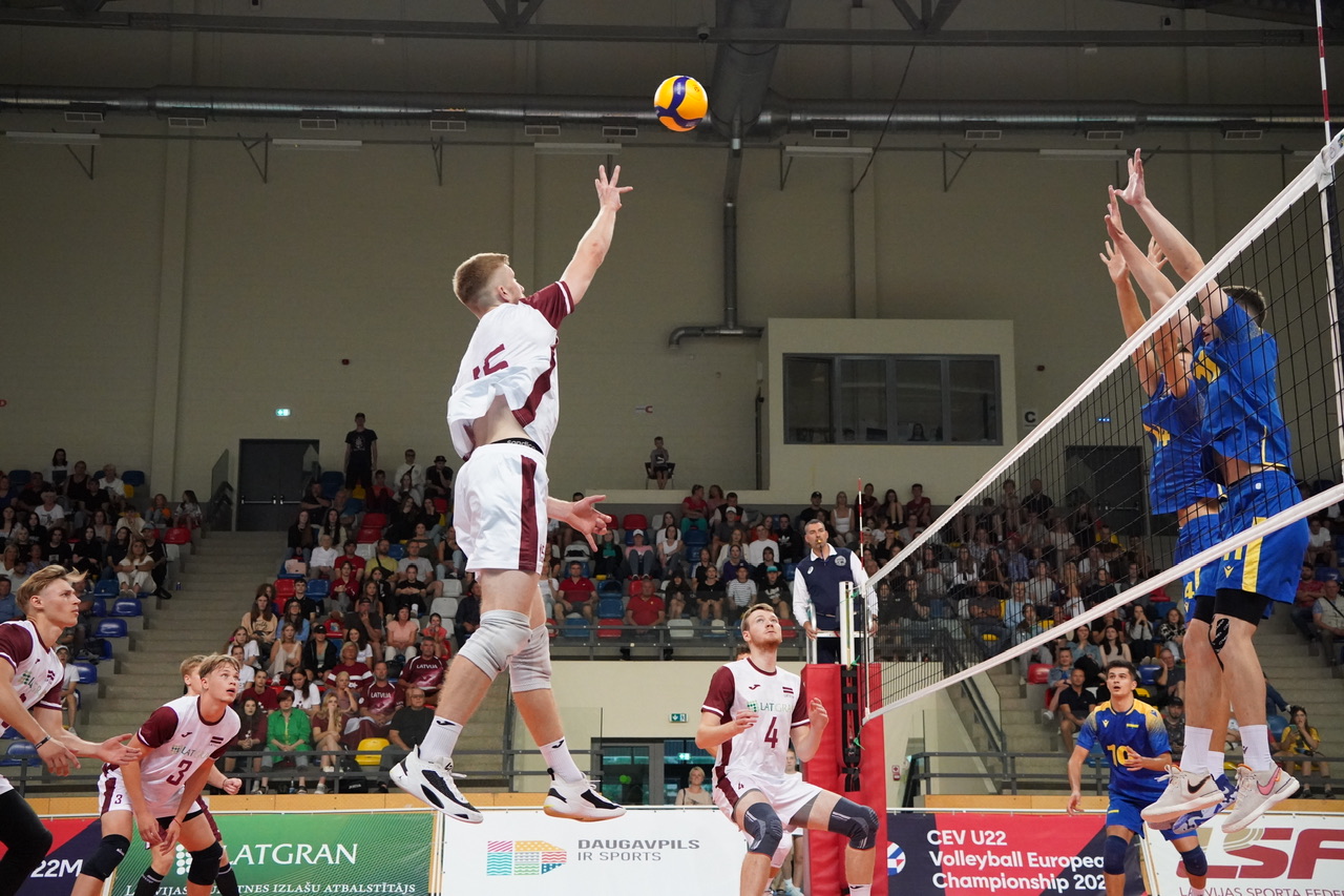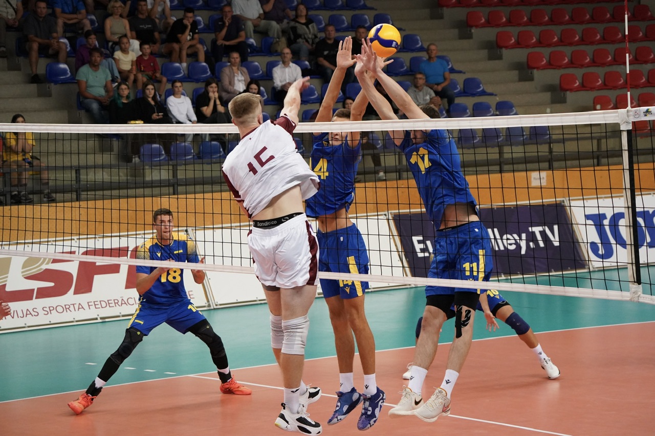The number of successful point winning blocks of UKRAINE compared to LATVIA.