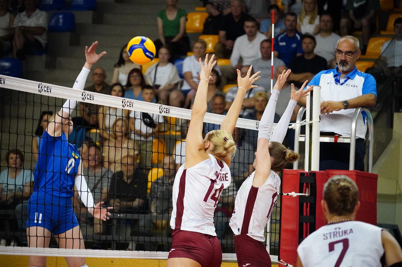 The number of successful point winning blocks of UKRAINE compared to LATVIA.