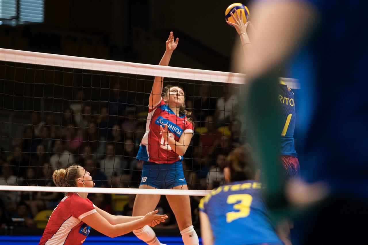 The Czech Republic and Romania got the ball rolling after an exciting first set. Both sides entered the court motivated, and ready to fight for each ball, as they started a point-for-point rally throughout the whole set. Romania put up a real fight, but with some decisive actions after the 20th point (an ace for 22-20 by Denisa Pavlikova and a great spike by the home side’s captain, Michaela Mlejnkova for the set point after a great rally), the players around head coach Ioannis Athanasopoulos emerged victorious. The better success on attack (15 winning spikes to nine) was crucial for the hosts in this set, as on the blocking and at the serving line the Romanian team was slightly better (four to three kill blocks, and three to two aces), delivering good defence as well.