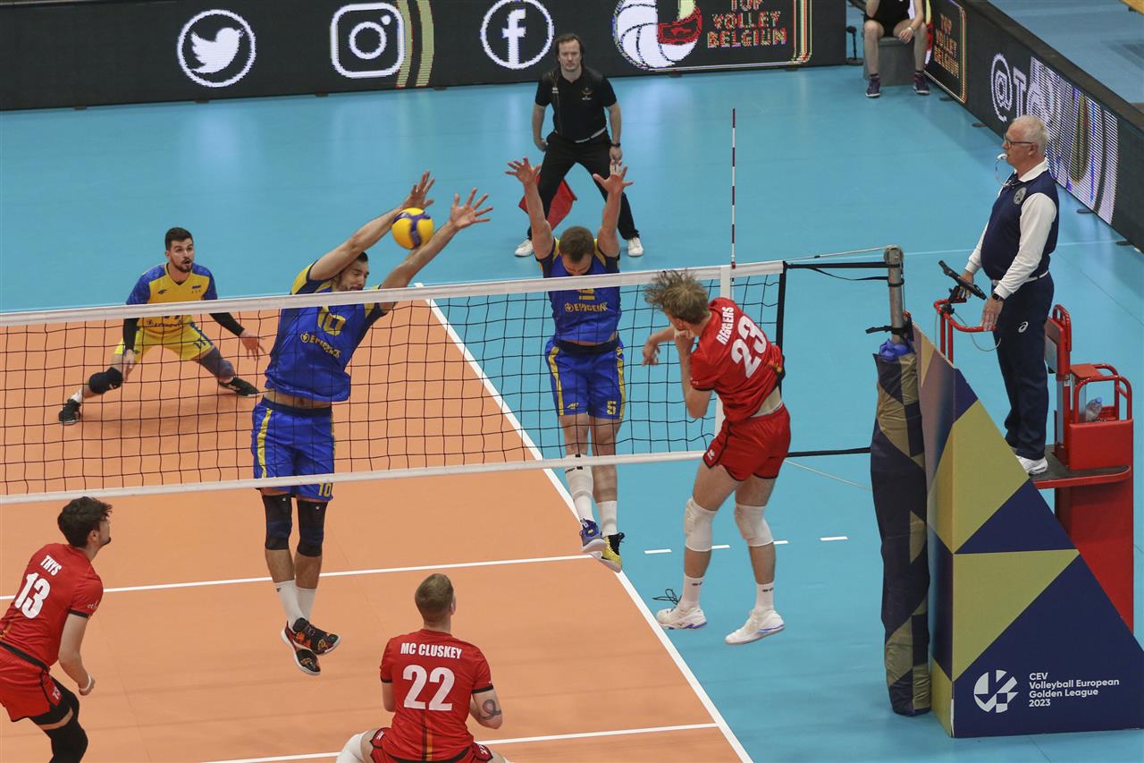 The number of successful point winning blocks of BELGIUM compared to UKRAINE.